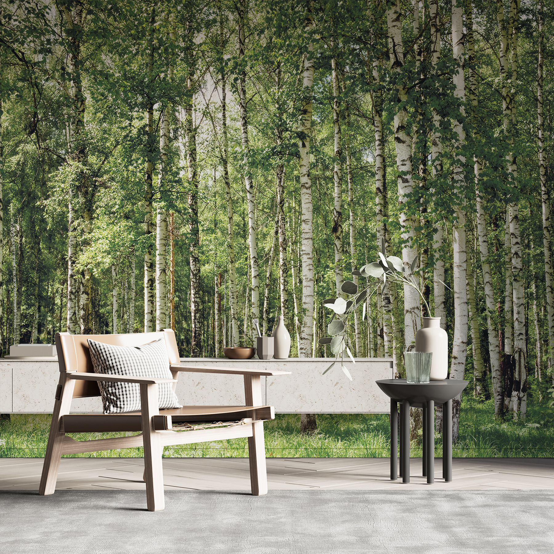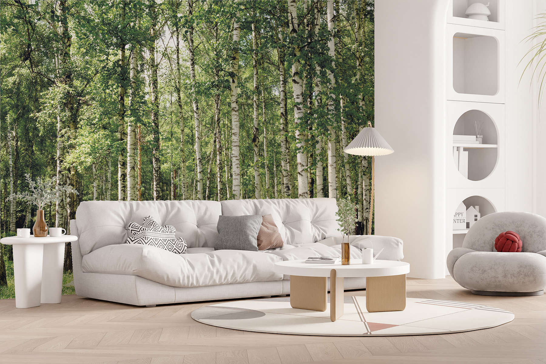 Imagine entrar num espaço acolhedor com o aroma de folhas frescas e sussurros da natureza. Este mural, com as suas bétulas vivas e folhas verdes vibrantes, traz essa sensação diretamente para a sua casa. É como ter uma pequena floresta na ponta dos dedos – sem necessidade de uma limpeza suja. Imagine-se a bebericar o seu café matinal, olhando para aquelas árvores altas que quase parecem balançar com a brisa. É perfeito para iluminar uma sala de estar ou dar um toque de frescura a um quarto. Basta um olhar e quase se ouve o farfalhar das folhas. Os amantes da natureza apreciarão definitivamente como este mural pode transformar uma parede numa fuga serena. Além disso, quem não gostaria de ter um pouco mais de vegetação na sua vida? A sério, é como um impulsionador de humor instantâneo!