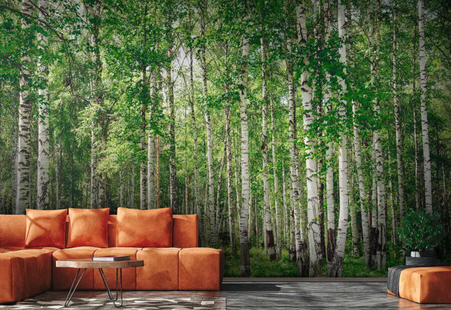 Imagine entrar num espaço acolhedor com o aroma de folhas frescas e sussurros da natureza. Este mural, com as suas bétulas vivas e folhas verdes vibrantes, traz essa sensação diretamente para a sua casa. É como ter uma pequena floresta na ponta dos dedos – sem necessidade de uma limpeza suja. Imagine-se a bebericar o seu café matinal, olhando para aquelas árvores altas que quase parecem balançar com a brisa. É perfeito para iluminar uma sala de estar ou dar um toque de frescura a um quarto. Basta um olhar e quase se ouve o farfalhar das folhas. Os amantes da natureza apreciarão definitivamente como este mural pode transformar uma parede numa fuga serena. Além disso, quem não gostaria de ter um pouco mais de vegetação na sua vida? A sério, é como um impulsionador de humor instantâneo!