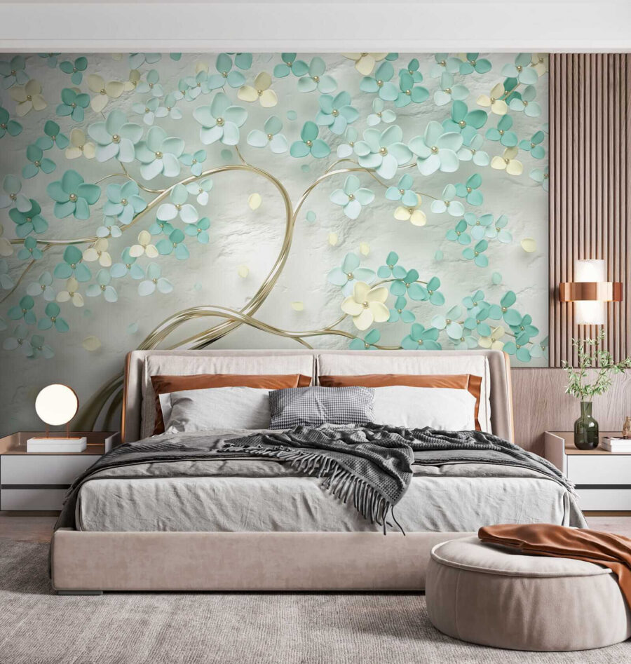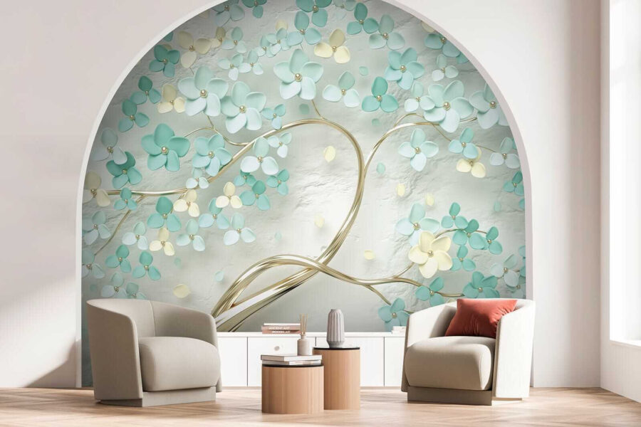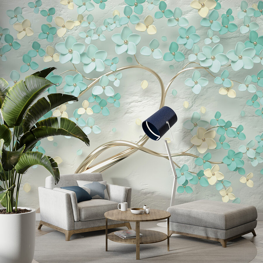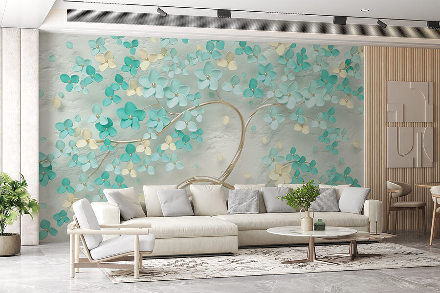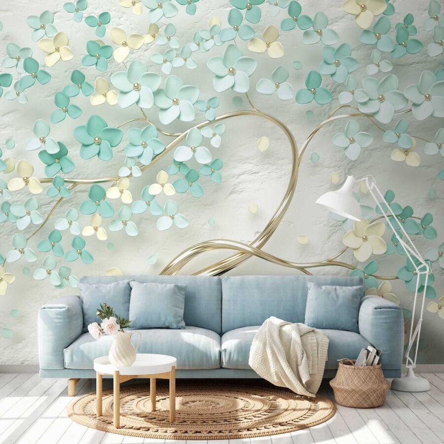 Transforme qualquer divisão com este deslumbrante mural de parede, onde delicadas flores dançam num cenário suave. Imagine-se a entrar num jardim iluminado pelo sol, onde as cores suaves do turquesa e do creme o envolvem suavemente. É como trazer um sopro de primavera para dentro de casa – não é necessário regar! Este mural não só acrescenta charme, como também cria uma atmosfera serena que sussurra relaxamento. Imagine-se a beber o seu café da manhã em frente a ele, sentindo a calma tomar conta de si, ou a criar um espaço acolhedor para ler à noite. Então, porque não deixar as suas paredes florescerem?