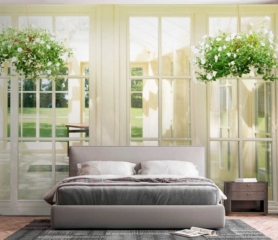 A luz suave que espreita através das janelas cria um ambiente acolhedor, ideal para aquelas manhãs preguiçosas de domingo com café na mão. Além disso, a vegetação oferece um toque de frescura, dando a sensação de que a natureza está mesmo na ponta dos seus dedos. Perfeito para qualquer divisão que deseje um toque de calor e charme, este mural tem tudo a ver com dar vida ao seu espaço. Quem não gostaria de se sentir um pouco mais ligado ao grande ar livre, certo?