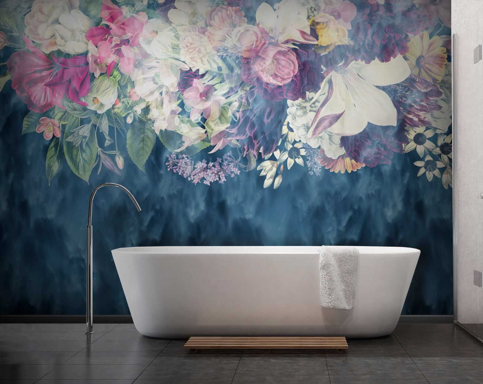 1 avaliação de Papel de parede Tapeçaria floral sobre ondas azuis
