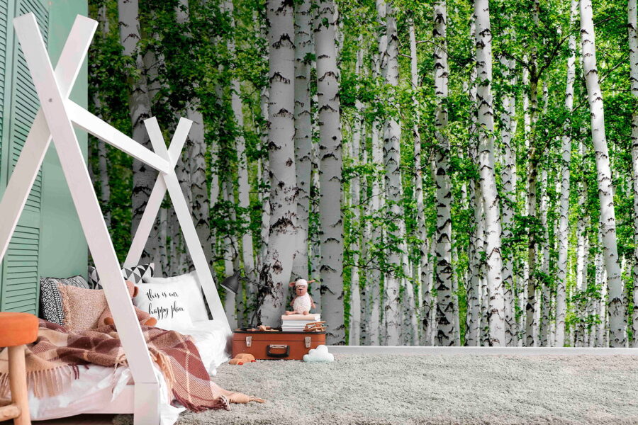 Transforme qualquer divisão numa oásis serena com este mural deslumbrante que apresenta um bosque repleto de folhas verdes vibrantes. Imagine entrar no seu espaço e sentir que entrou numa floresta tranquila, com o suave sussurro das folhas ao vento. É como se a natureza tivesse decidido passar férias permanentes na sua casa. Perfeito para salas de estar acolhedoras ou quartos tranquilos, este mural convida-o a relaxar e descontrair. Além disso, é um ótimo tema para iniciar uma conversa — quem não gostaria de conversar sobre sua floresta interna? Seja enquanto toma um café ou se aconchega com um livro, este mural adiciona um toque refrescante que aquece a alma e acalma os sentidos.