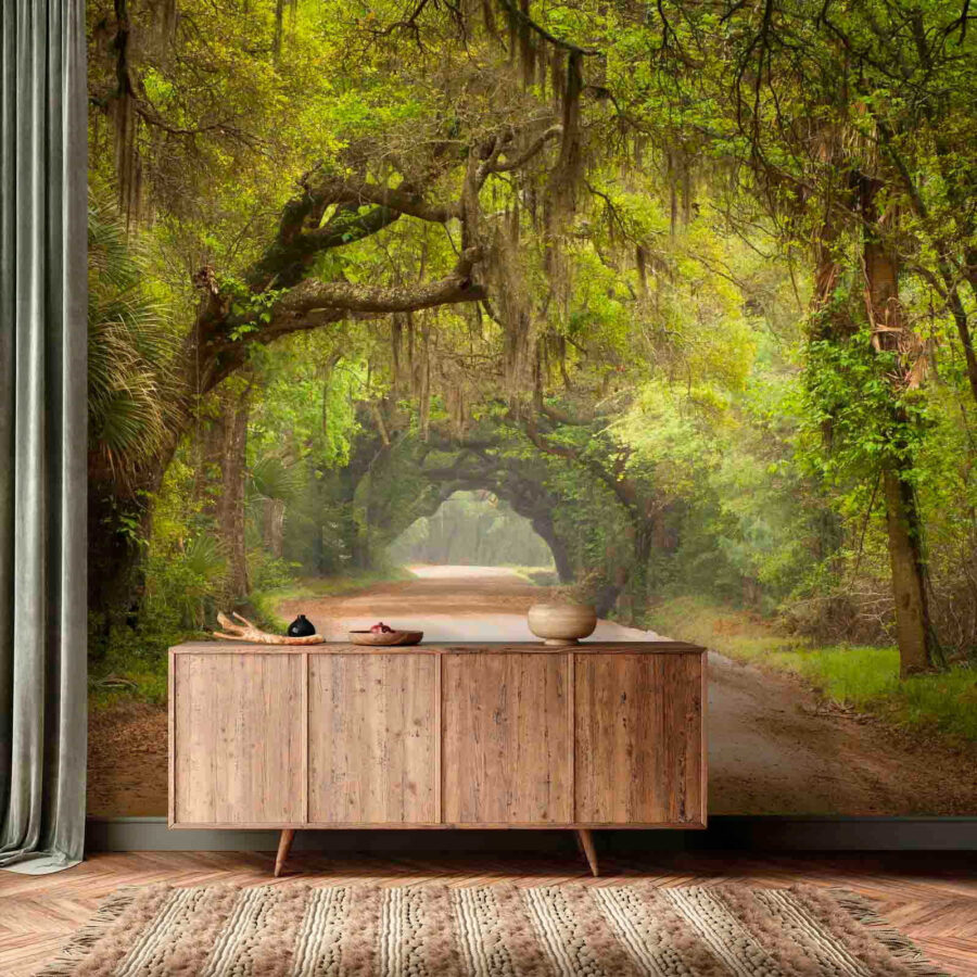 Imagine entrar num dia ensolarado numa estrada de terra, onde as árvores dançam acima, cobertas por um véu verde e macio de musgo. Este mural não é apenas uma decoração de parede — é uma fuga, um pequeno pedaço da natureza mesmo na sua sala de estar. Convida a sonhar acordado com passeios por esse caminho, talvez encontrando um veado curioso ou apenas sentindo uma brisa suave. Perfeito para aqueles que amam o ar livre, mas não estão prontos para abrir mão do conforto do interior de casa. Adicione um toque de calor e uma pitada de aventura a qualquer espaço e, assim, cada olhar pode parecer uma mini-férias. Quem não gostaria de um lugar na primeira fila para uma vista tão tranquila?