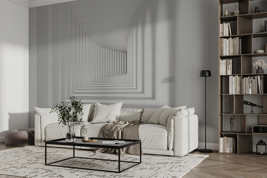 2 avaliações de Papel de parede Corredor branco com sombras na parede