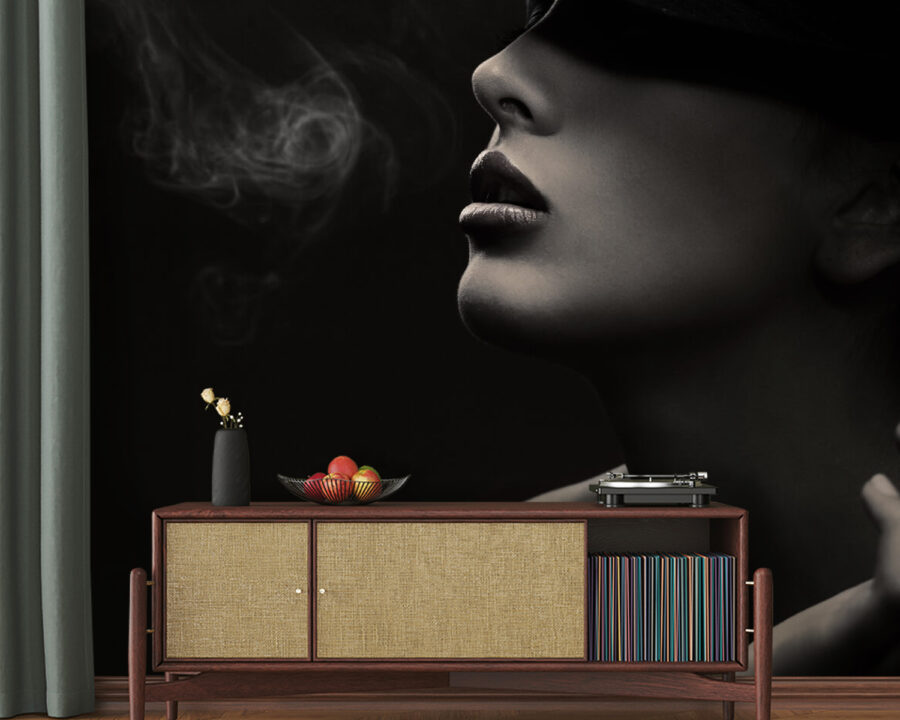 Transforme o seu espaço num refúgio artístico com este mural cativante de uma mulher com um chapéu, a fumar casualmente. É como entrar num café com estilo, onde cada canto sussurra elegância e intriga. A forma como ela olha para a distância, rodeada por um remoinho de fumo, acrescenta um toque de mistério – perfeito para suscitar conversas interessantes.