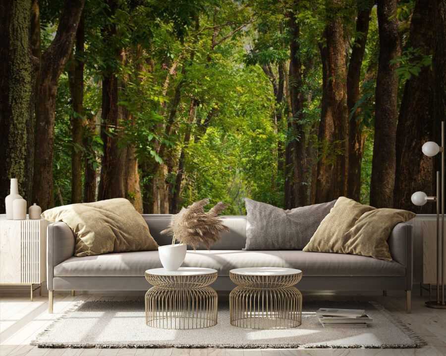 Transforme o seu espaço com este cativante mural de parede que apresenta um caminho sereno ladeado por árvores majestosas. Imagine percorrer este caminho tranquilo todos os dias sem sair de casa — cada olhar para o mural traz uma sensação de calma e conexão com a natureza. A luz do sol filtra-se através das folhas, criando uma atmosfera acolhedora e convidativa que faz com que até o gato mais rabugento se anime com curiosidade. Seja na sala de estar ou num recanto de leitura acolhedor, este mural sussurra histórias de passeios tranquilos e tardes preguiçosas. Além disso, os tons terrosos acrescentam o toque certo de elegância. Quem precisa de uma escapadela ao ar livre quando se pode ter esta vista encantadora na sua parede?