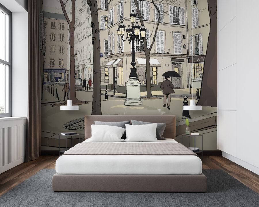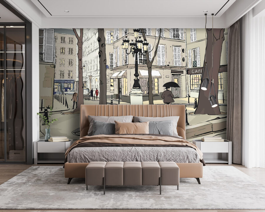 Transforme uma parede simples numa cena animada com este mural caprichoso que capta a essência da vida na cidade. Imagine-se a passear por uma rua encantadora, ladeada por árvores altas e cafés pitorescos, onde cada olhar revela algo encantador. A paleta de cores suaves proporciona uma vibração acolhedora, tornando-a perfeita para uma sala de estar ou um espaço criativo. Imagine um café da manhã com este pano de fundo ou uma atmosfera divertida num quarto de criança. É como convidar uma pequena fatia da cidade para a sua casa – esquisita, comovente e cheia de histórias. É mais do que apenas um mural; é uma experiência à espera de se revelar em cada momento partilhado.
