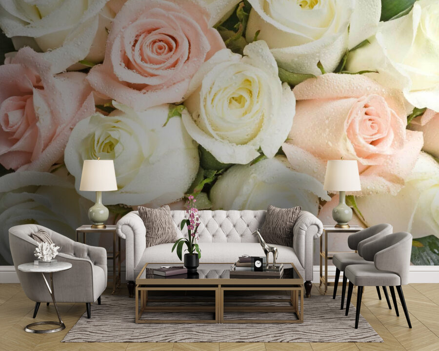 Transforme o seu espaço com este impressionante mural de parede com uma encantadora mistura de rosas cor-de-rosa e brancas. Imagine entrar numa sala e ser recebido por uma explosão de charme floral que parece uma festa no jardim — sem a necessidade de regadores! Os tons suaves sussurram relaxamento, enquanto as adoráveis gotas de chuva nas pétalas trazem um toque refrescante. Perfeito para um recanto de leitura acolhedor ou uma sala de estar animada, é como ter a beleza da natureza ao seu alcance. Quem não sorriria ao ver uma imagem tão alegre? É hora de trazer o exterior para dentro e deixar essas rosas fazerem sua mágica!