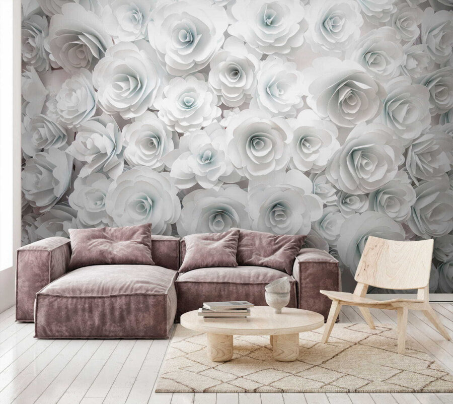 Estas flores lindamente trabalhadas adicionam um toque de elegância, mantendo o ambiente leve e arejado. Perfeito para iluminar um canto monótono ou para criar um efeito marcante acima de um sofá aconchegante. Cada pétala parece sussurrar: “Relaxe, você está em casa.” E não nos esqueçamos da melhor parte: não é preciso regar! Com este mural, todas as estações parecem primavera.