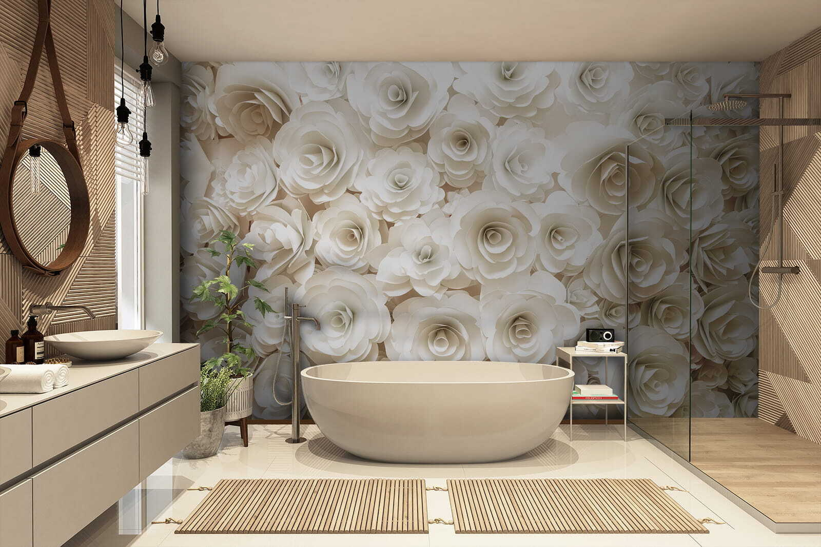 Estas flores lindamente trabalhadas adicionam um toque de elegância, mantendo o ambiente leve e arejado. Perfeito para iluminar um canto monótono ou para criar um efeito marcante acima de um sofá aconchegante. Cada pétala parece sussurrar: “Relaxe, você está em casa.” E não nos esqueçamos da melhor parte: não é preciso regar! Com este mural, todas as estações parecem primavera.