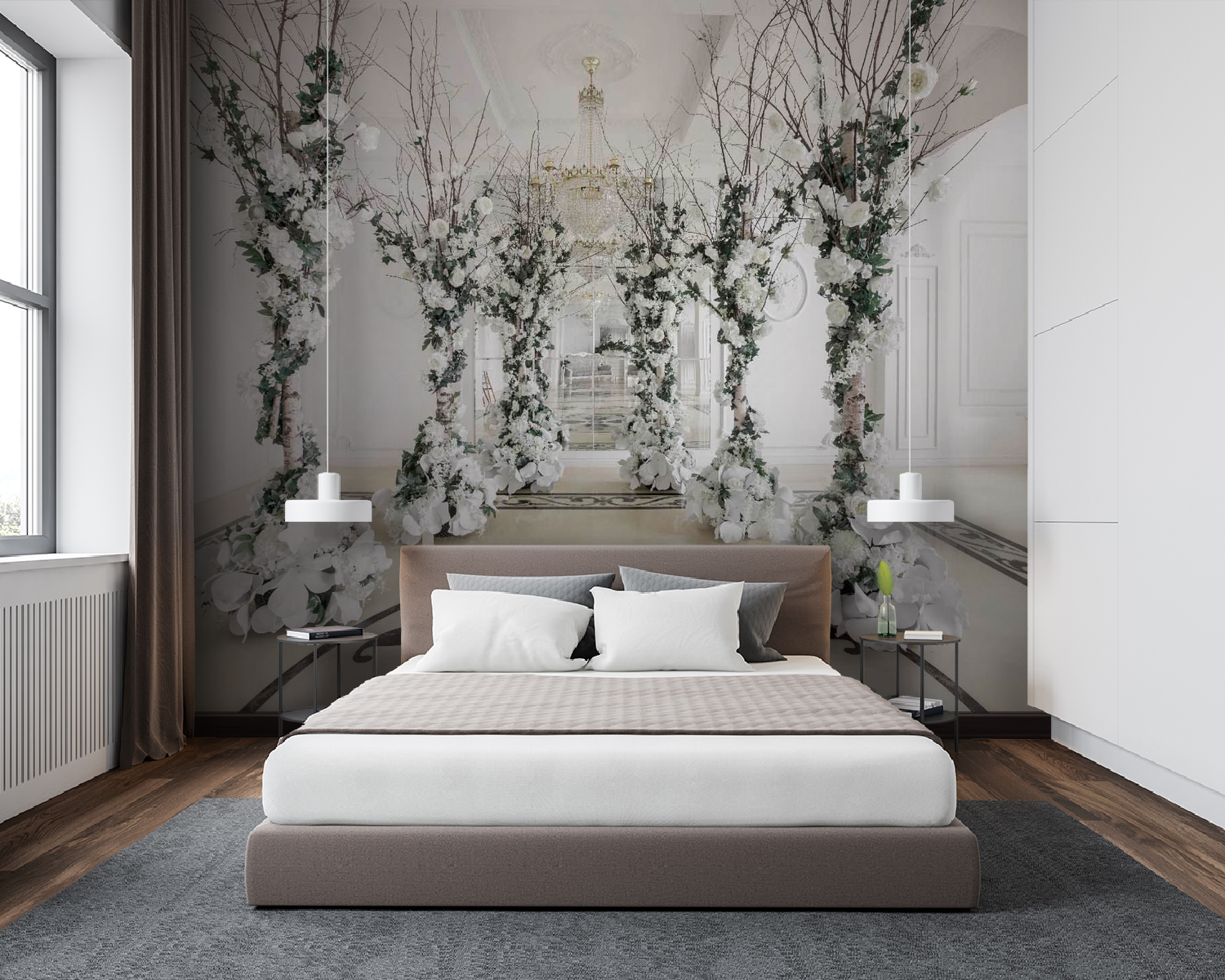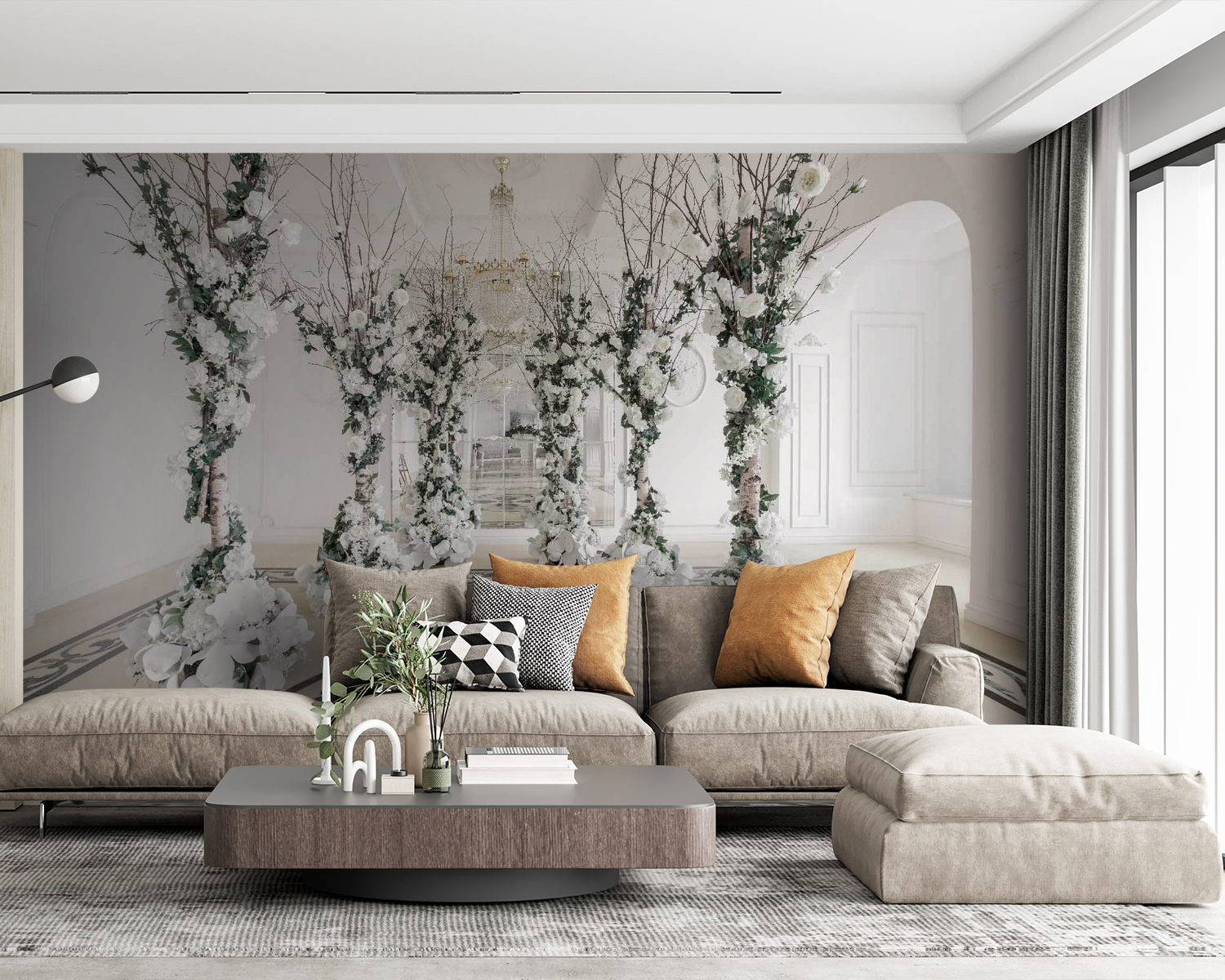 Entre num oásis de sonho com este mural deslumbrante, “Grupo de Flores Brancas numa Sala”. Imagine entrar no seu espaço e sentir que está num jardim sereno, mesmo na sua própria casa. Os desenhos florais brancos criam uma atmosfera limpa e fresca que ilumina qualquer divisão, ao mesmo tempo que acrescenta um toque de elegância. É como uma lufada de ar fresco sem pólen!