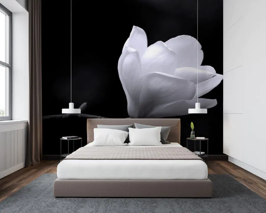 Imagine chegar a casa após um longo dia e este mural recebê-lo como um velho amigo, pronto para acalmar a agitação do dia-a-dia. A vibração serena que cria — tão relaxante! Além disso, transmite sofisticação sem chamar a atenção. Quer esteja a receber amigos ou a desfrutar de uma chávena de chá tranquila, este mural eleva facilmente o ambiente. São os pequenos detalhes, como a textura das pétalas e a calma do monocromático, que transformam uma parede simples em uma tela de beleza — quem não gostaria disso?