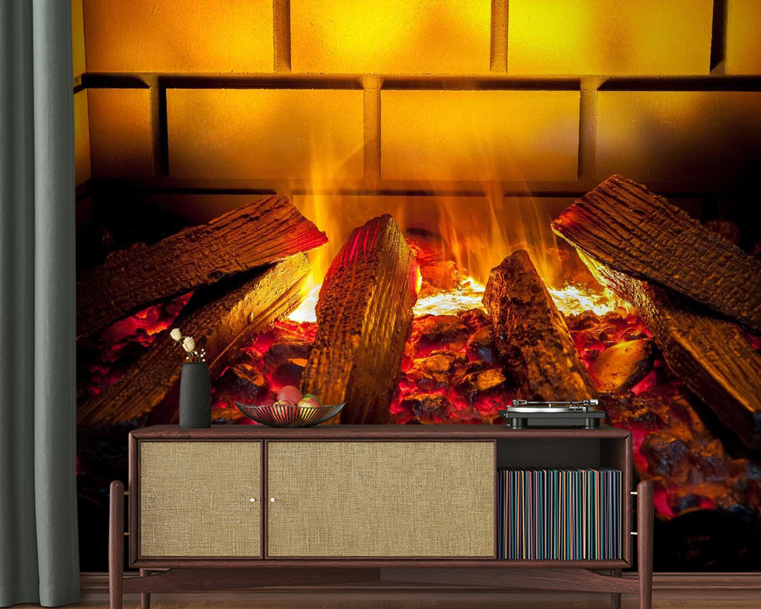 Imagine chegar a casa depois de um longo dia e ser recebido pelo abraço aconchegante de uma lareira crepitante – mas sem o incómodo de cortar lenha ou atiçar as chamas. É isso que este mural “Calor e conforto na lareira” faz por si. É como magia para as suas paredes. Perfeito para aquelas noites frias de inverno em que quer sentir o brilho sem o fumo.