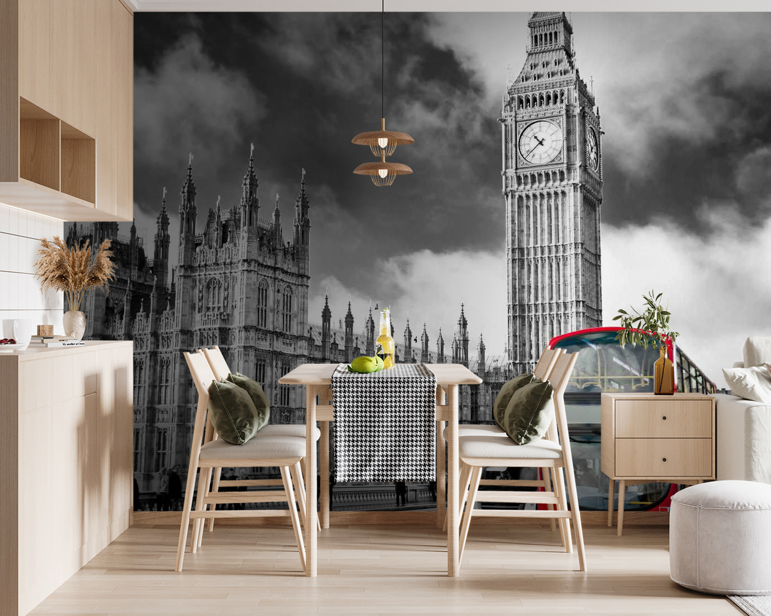 Transforme o seu espaço com este mural deslumbrante que apresenta um autocarro vermelho vibrante de dois andares a passar por uma majestosa torre do relógio — sim, é como se estivesse a convidá-lo para tomar uma chávena de chá! A mistura da arquitetura a preto e branco com aquele toque de vermelho parece um postal de Londres, mesmo na sua parede. Imagine os seus amigos a entrar, com os olhos a brilhar de nostalgia ou curiosidade. Não é apenas decoração; é um tema para iniciar conversas, despertando histórias sobre aventuras no estrangeiro. Prepare-se para abraçar essas vibrações da cidade todos os dias! Perfeito para quem gosta de um toque de fantasia e um pouco de charme.