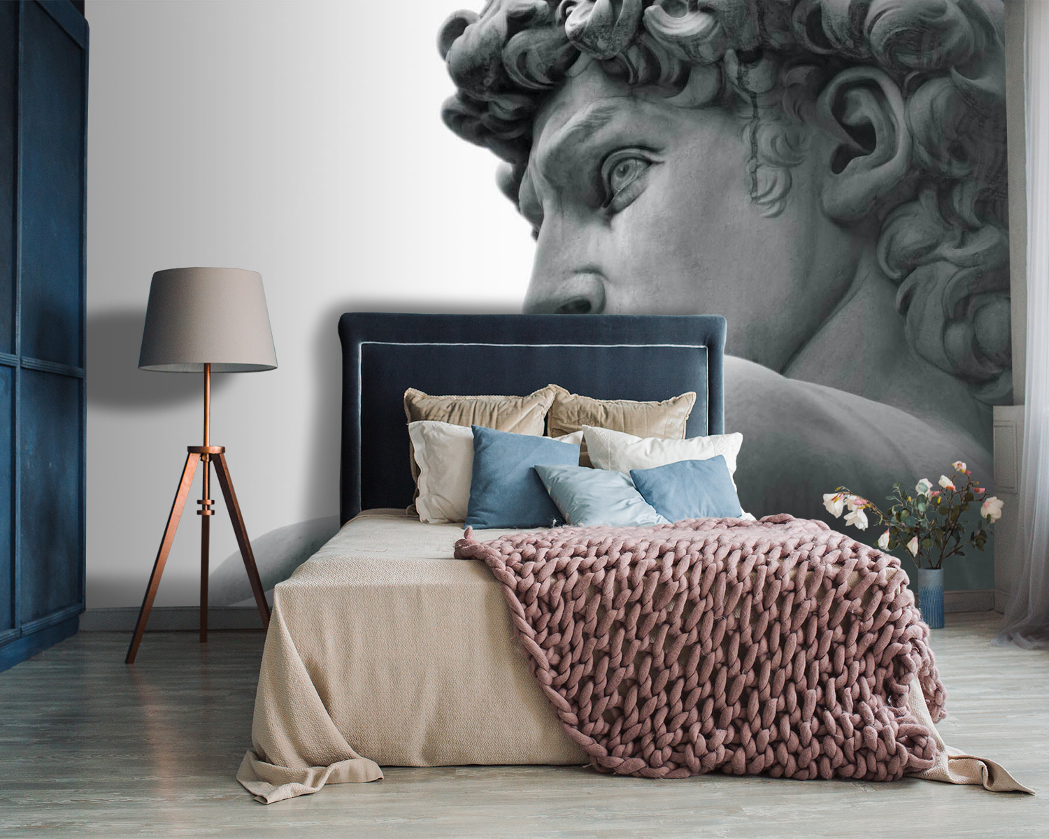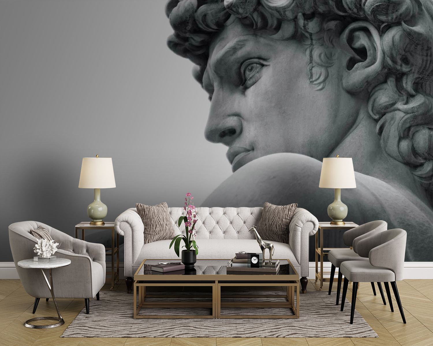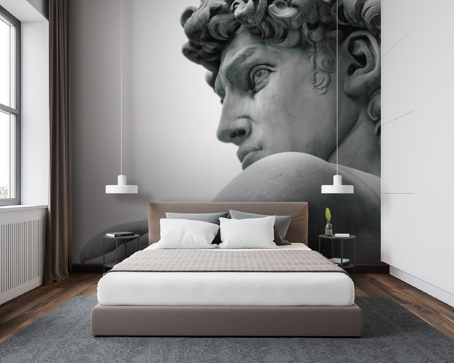 Este mural de parede de uma estátua de um homem é como trazer um pedaço de um grande museu diretamente para o seu próprio espaço. Imagine ter este rosto marcante e intemporal a vigiar a sua sala de estar – um início de conversa instantâneo, certo? É perfeito para quem deseja um pouco de elegância clássica, mas num ambiente fresco e moderno. Os pormenores são tão vívidos que quase se pode sentir a suavidade fresca do mármore. Pode transformar totalmente uma parede vulgar num ponto focal deslumbrante. Pense que, de cada vez que o vislumbrar, sentir-se-á um pouco mais culto e sofisticado!