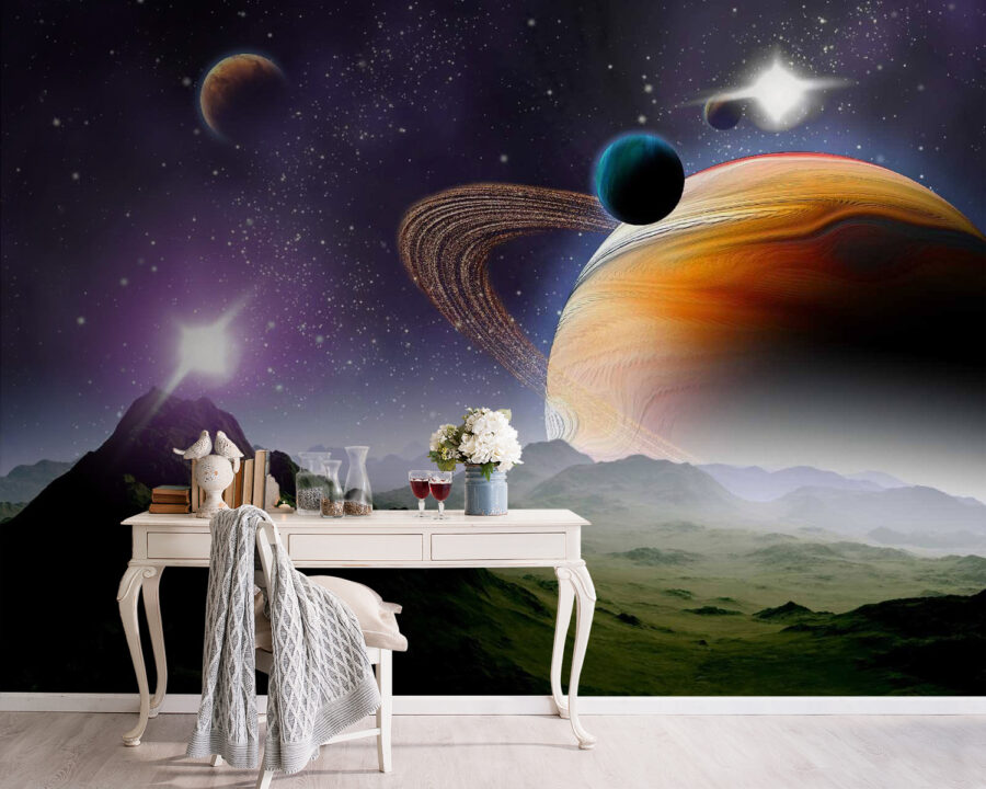 Transforme o seu espaço numa escapadela cósmica com este deslumbrante mural de parede com planetas e estrelas num vasto universo. Imagine entrar numa galáxia onde as cores colidem numa dança de tons vibrantes e redemoinhos suaves. Este mural não se limita a decorar paredes; desperta a imaginação e uma pitada de desejo de viajar. Imagine-se a enrolar-se com um livro, a perder-se numa história enquanto o universo o rodeia. Ou talvez inspire conversas profundas sobre a vida, os sonhos e o que existe lá fora. Adequado para qualquer divisão, é um perfeito início de conversa – quem não gostaria de conversar sobre aventuras interestelares enquanto bebe um café? Não é apenas um mural; é uma porta de entrada para o cosmos, mesmo em sua casa!