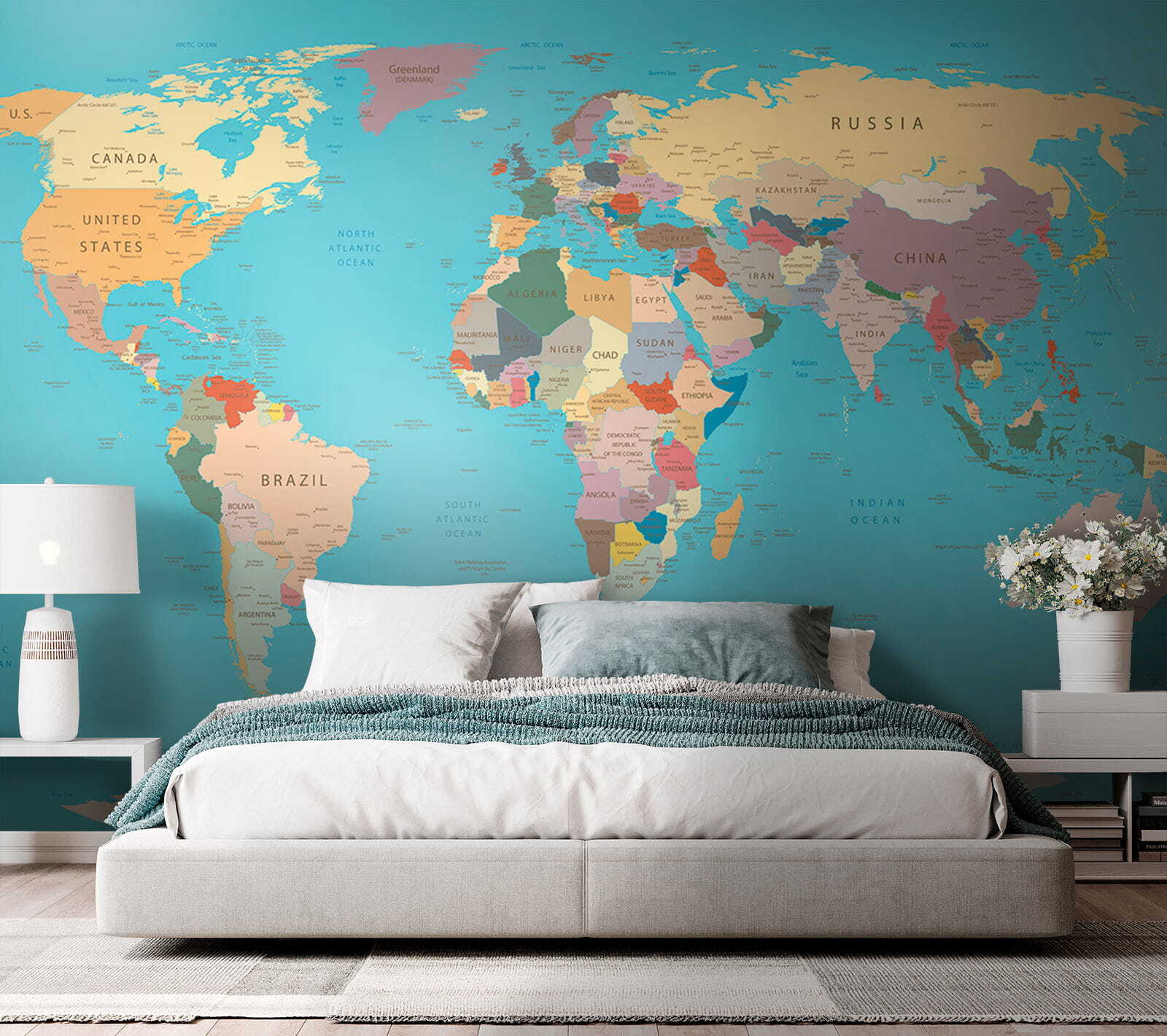 Então, porque não trazer o mundo – ou pelo menos uma grande parte dele – para o seu espaço com este encantador mural de parede?