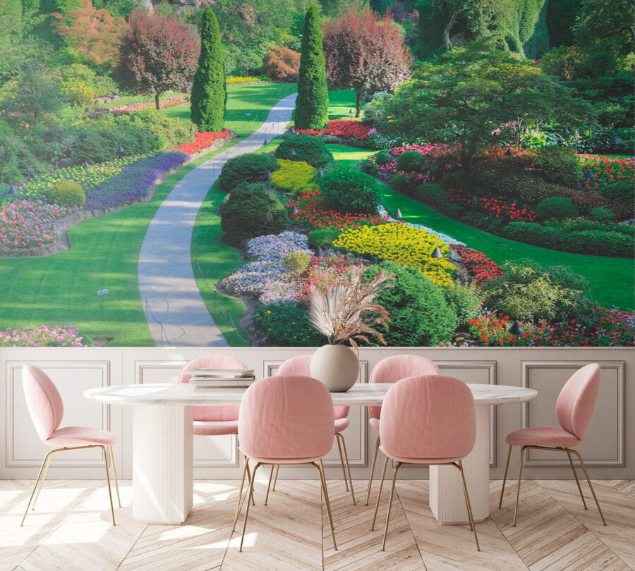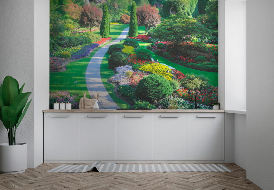 Transform your space into a vibrant escape with this stunning wall mural that captures a garden bursting with color. Imagine walking through a winding path flanked by blooming flowers and lush greenery—it’s like bringing the outdoors in! Perfect for brightening up a dull wall or creating a peaceful nook, this mural invites daydreams of sunny days and butterflies flitting about. Feel that calm wash over you as you sip your morning coffee while surrounded by nature’s beauty, minus the pesky bugs, of course. A touch of charm, a splash of joy—what’s not to love?