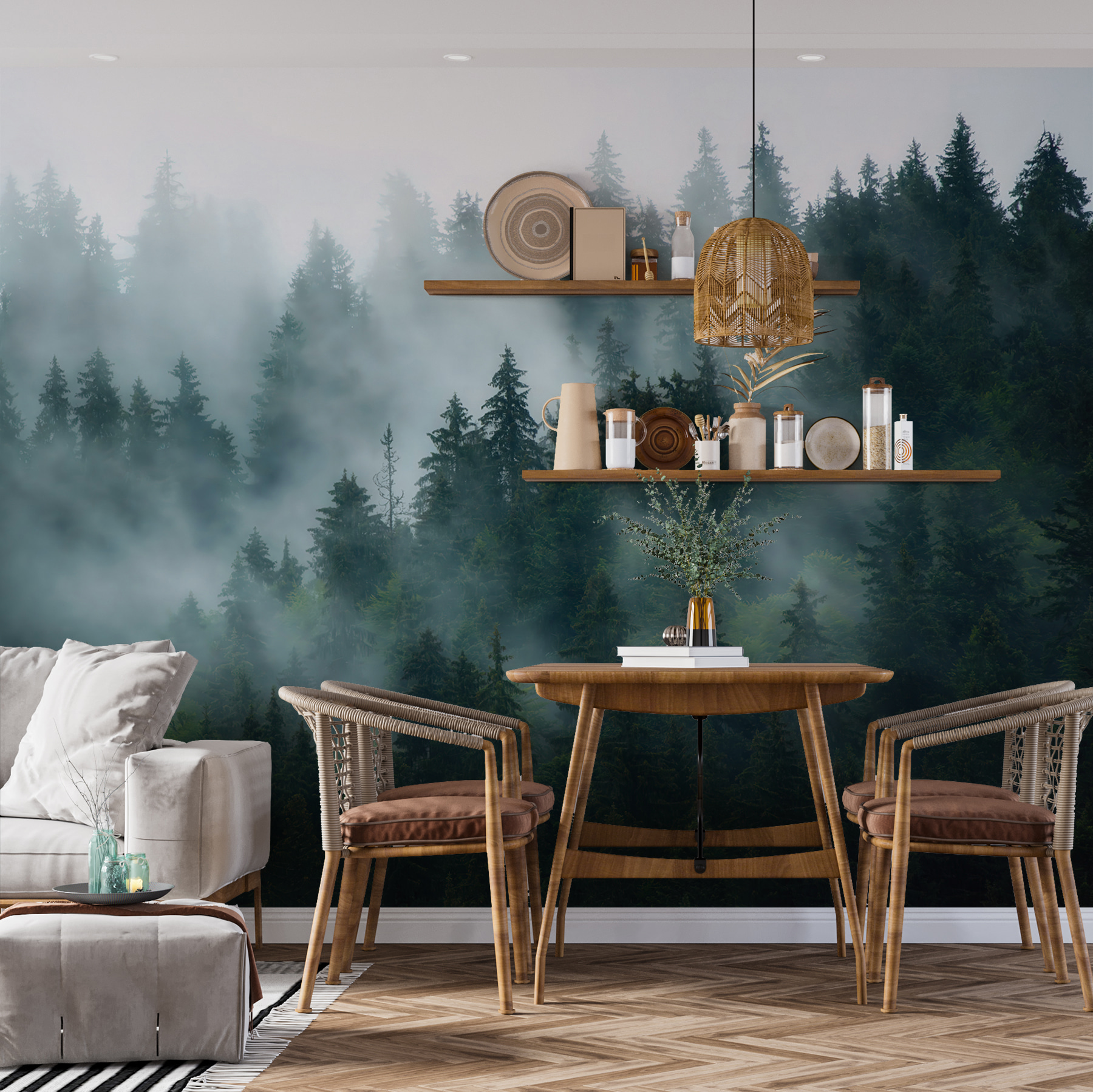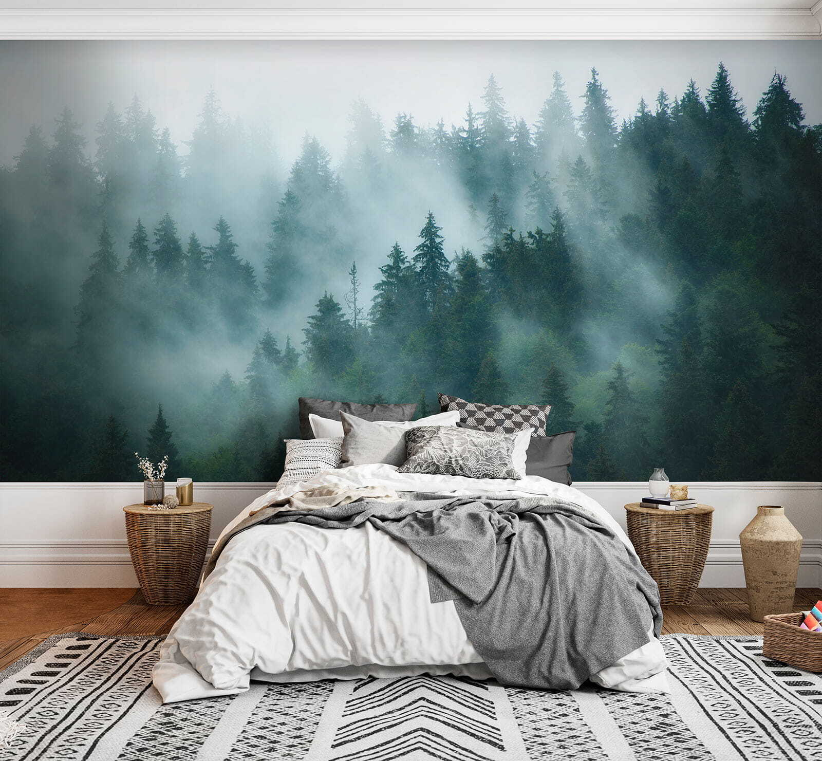 Imagine entrar numa sala e sentir que está a entrar numa floresta mística numa manhã de nevoeiro. É exatamente isso que este mural “Grupo de árvores no nevoeiro” faz ao seu espaço. Tem aquelas vibrações sussurrantes – árvores envoltas num nevoeiro suave e enevoado que faz com que tudo pareça um pouco mais sonhador. Ótimo para quem adora a natureza ou apenas precisa de um pouco de calma na sua vida agitada.