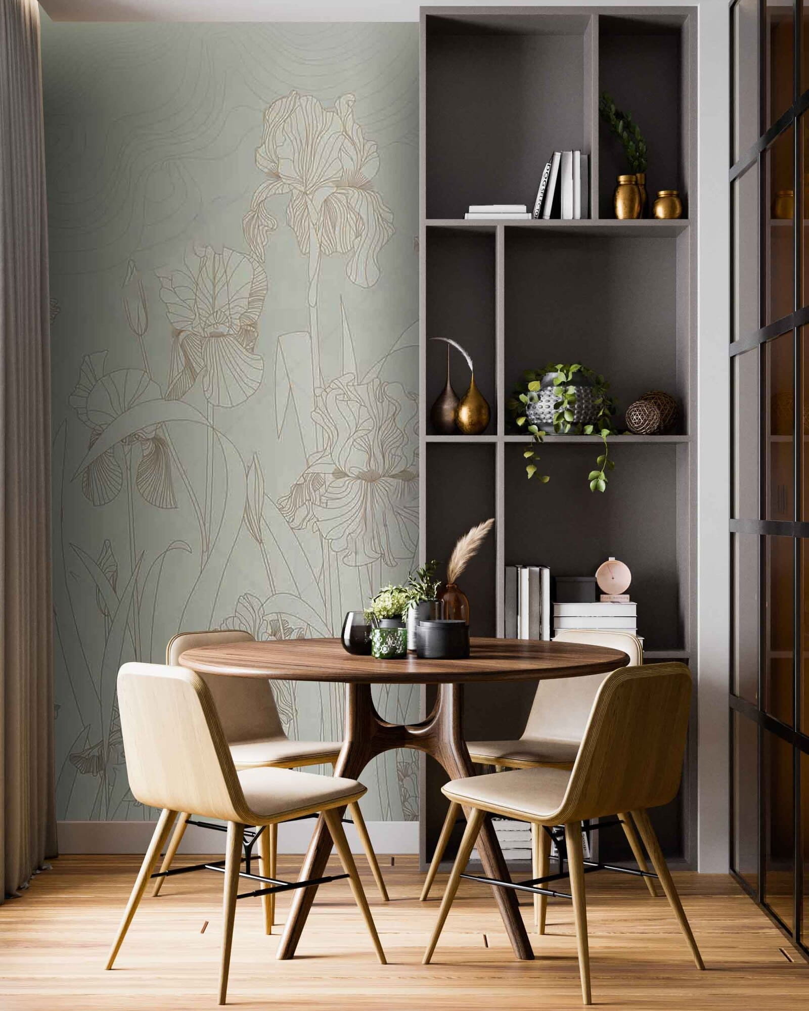 Transforme o seu espaço com “Whispers of Nature in Soft Hues” (Sussurros da Natureza em Tons Suaves). Este mural dá a sensação de um passeio tranquilo por um jardim sereno, onde cada pétala sussurra segredos de serenidade. As cores suaves e discretas criam um cenário relaxante, perfeito para sonhar acordado ou para lidar com as intermináveis listas de tarefas da vida. Imagine-se a beber chá rodeado por delicadas flores de íris, cuja elegância convida à calma na sua casa. É como trazer um pedaço do exterior para dentro de casa, sem os insetos irritantes! Fácil de aplicar e ainda mais fácil de adorar, este mural transformará qualquer parede num refúgio sereno.