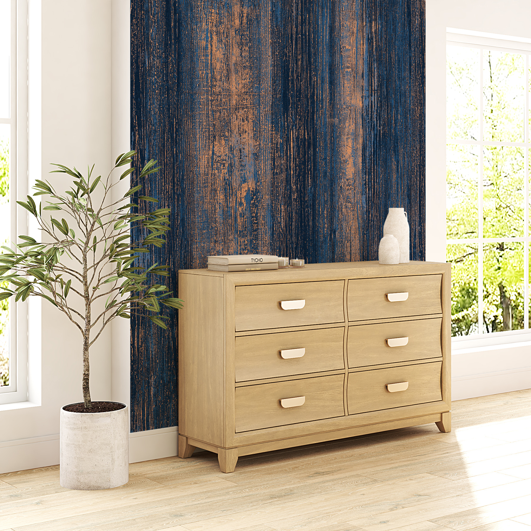 Imagine entrar numa sala que parece uma galeria de arte acolhedora, só por causa de uma parede. Este mural de parede, com os seus tons de azul profundo e bronze quente, acrescenta um toque único que faz com que qualquer espaço se sinta convidativo. Pense nas vibrações serenas que ele traz – como um oceano calmo ao anoitecer, com apenas uma pitada de charme rústico. Perfeita para uma sala de estar ou para um recanto de leitura, pode suscitar conversas e inspirar a criatividade. Os amigos vão perguntar-se onde é que encontrou uma joia destas. Além disso, é super fácil de mudar quando estiver pronto para uma mudança. Quem diria que transformar um espaço poderia ser tão divertido?