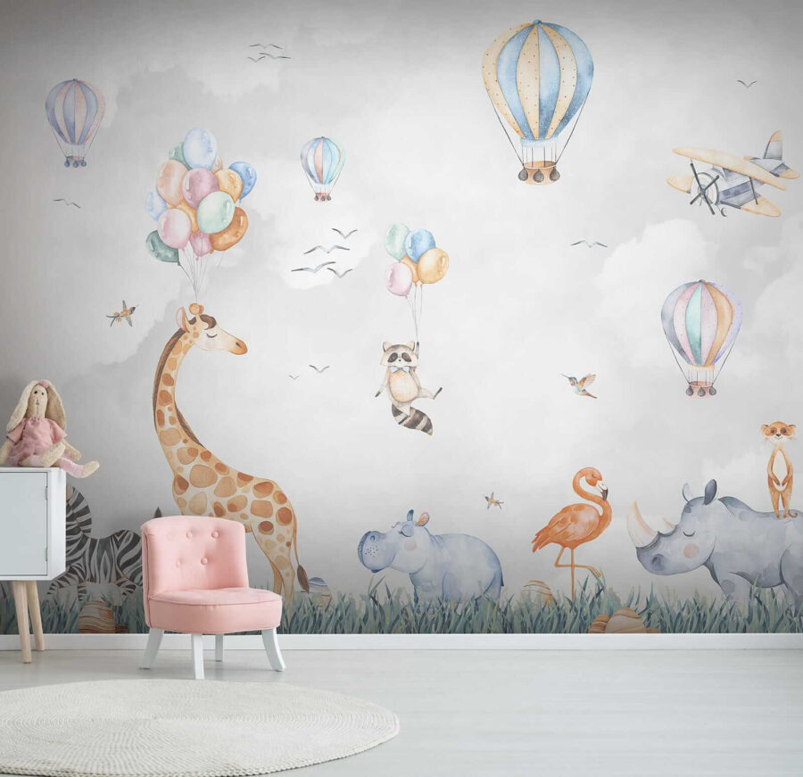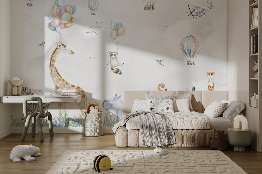 Aqui está uma pitada de capricho para o espaço do seu filho! O mural de parede “Hipopótamo na Relva” é um encanto absoluto. Imagine entrar numa sala e sentir-se como se estivesse num safari mágico – balões de ar quente a flutuar, animais como girafas e zebras a relaxar em campos de relva alta. Até um guaxinim atrevido a segurar balões! Este mural traz uma vibração vibrante e lúdica que as crianças – e os adultos – adoram. Perfeito para um quarto de criança, desperta a imaginação e a aventura. Imagine as histórias de embalar com um cenário totalmente novo, tornando cada noite numa mini aventura. E quem não gostaria de ter um hipopótamo feliz no seu quarto? É sem dúvida um ponto de partida para a conversa. Prepare-se para os oohs e ahs dos mais pequenos (e dos grandes também!). Não é apenas decoração, é alegria espalhada numa parede.