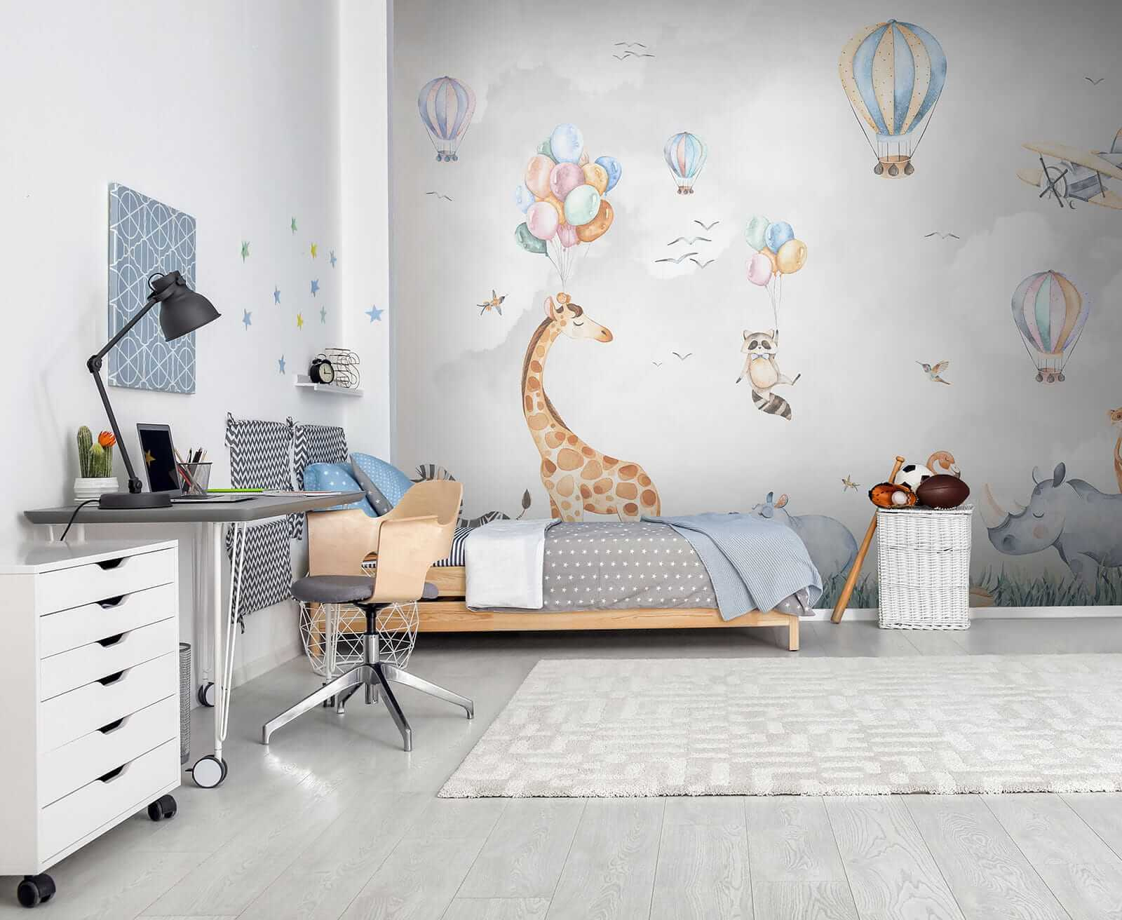Aqui está uma pitada de capricho para o espaço do seu filho! O mural de parede “Hipopótamo na Relva” é um encanto absoluto. Imagine entrar numa sala e sentir-se como se estivesse num safari mágico – balões de ar quente a flutuar, animais como girafas e zebras a relaxar em campos de relva alta. Até um guaxinim atrevido a segurar balões! Este mural traz uma vibração vibrante e lúdica que as crianças – e os adultos – adoram. Perfeito para um quarto de criança, desperta a imaginação e a aventura. Imagine as histórias de embalar com um cenário totalmente novo, tornando cada noite numa mini aventura. E quem não gostaria de ter um hipopótamo feliz no seu quarto? É sem dúvida um ponto de partida para a conversa. Prepare-se para os oohs e ahs dos mais pequenos (e dos grandes também!). Não é apenas decoração, é alegria espalhada numa parede.