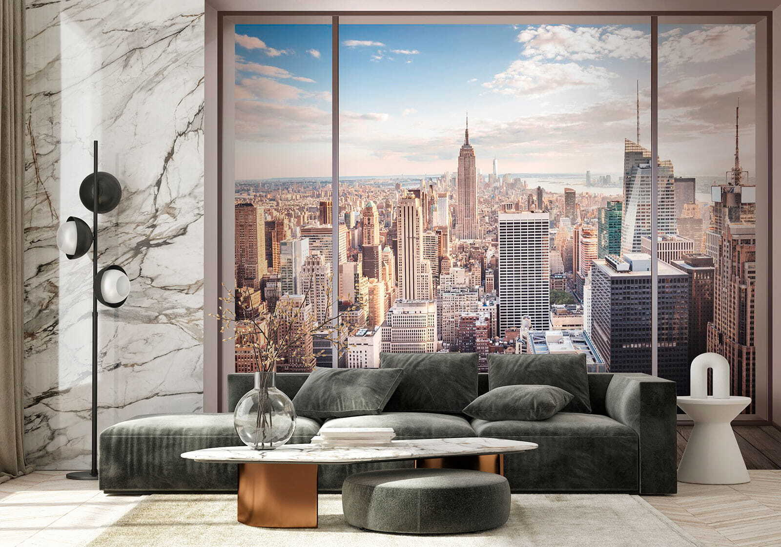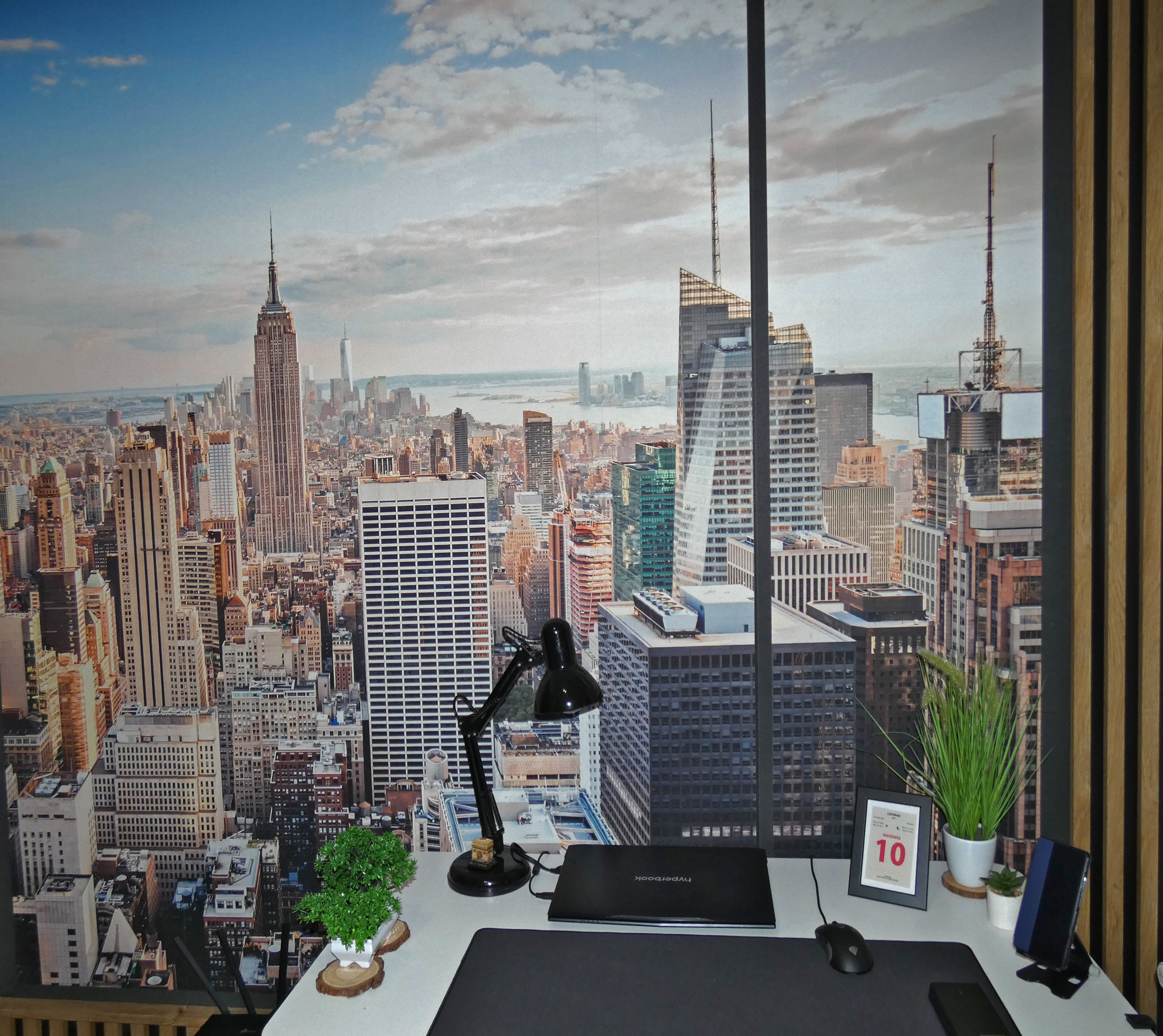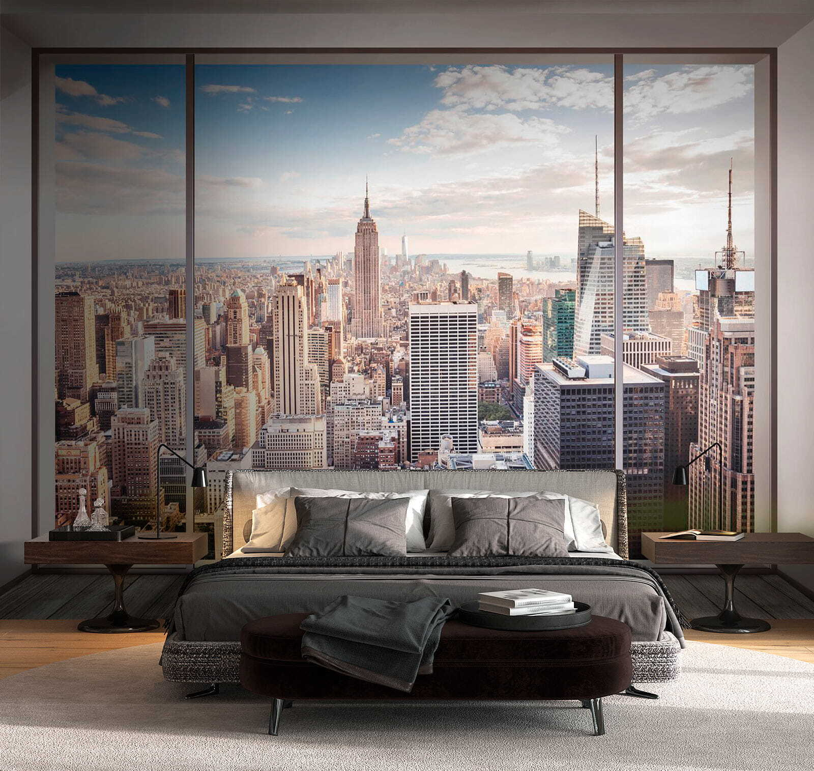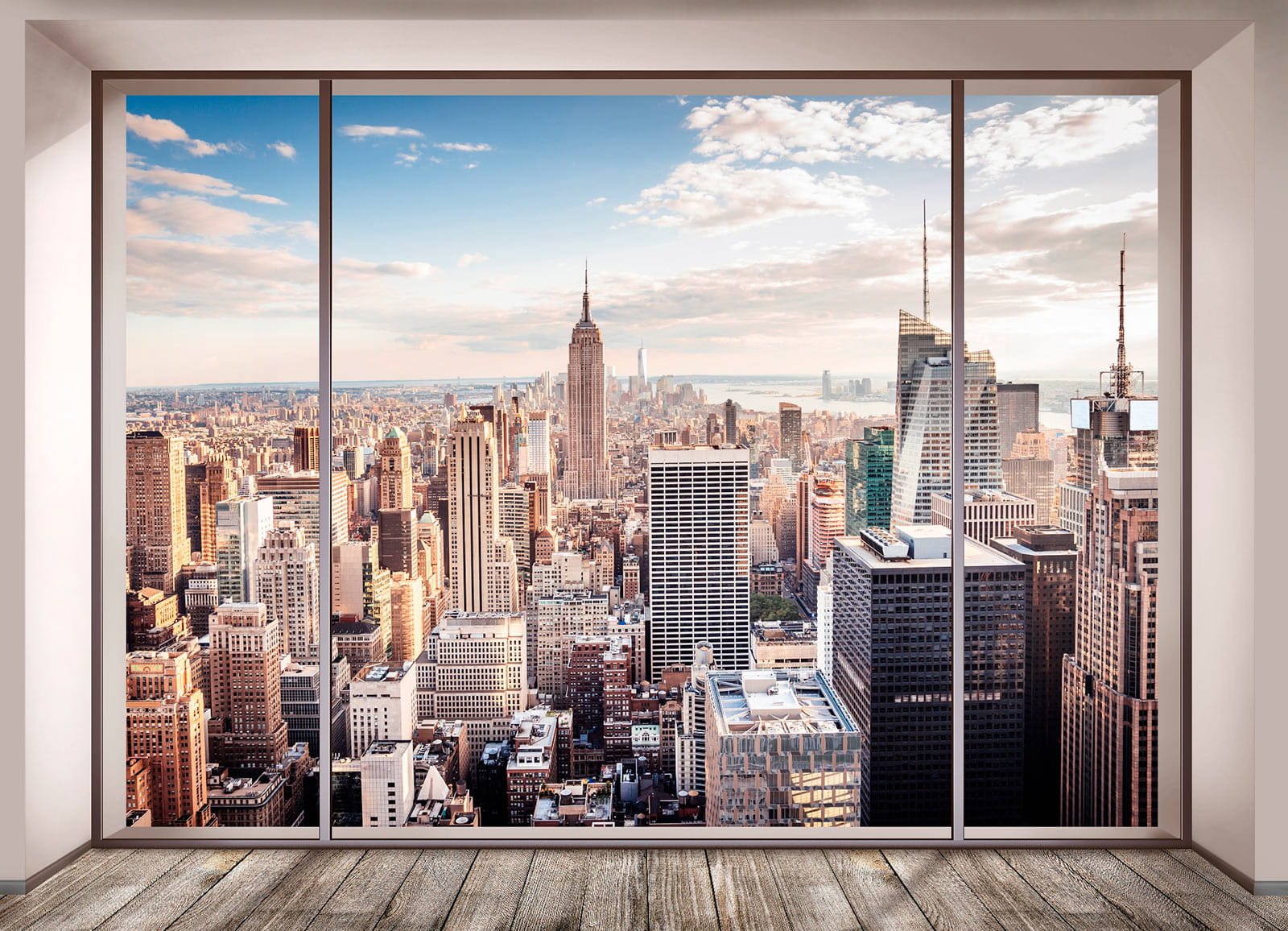 Imagine acordar com isto todos os dias – uma linha do horizonte épica sem ter de sair do seu quarto! “Papel de parede Skyline view through large window” dá-lhe essa sensação de cidade grande, sem a azáfama. Perfeito para quem sonha com a vida na cidade ou simplesmente adora uma vista fantástica. É como ter uma penthouse na sua sala de estar. Além disso, não há barulho!