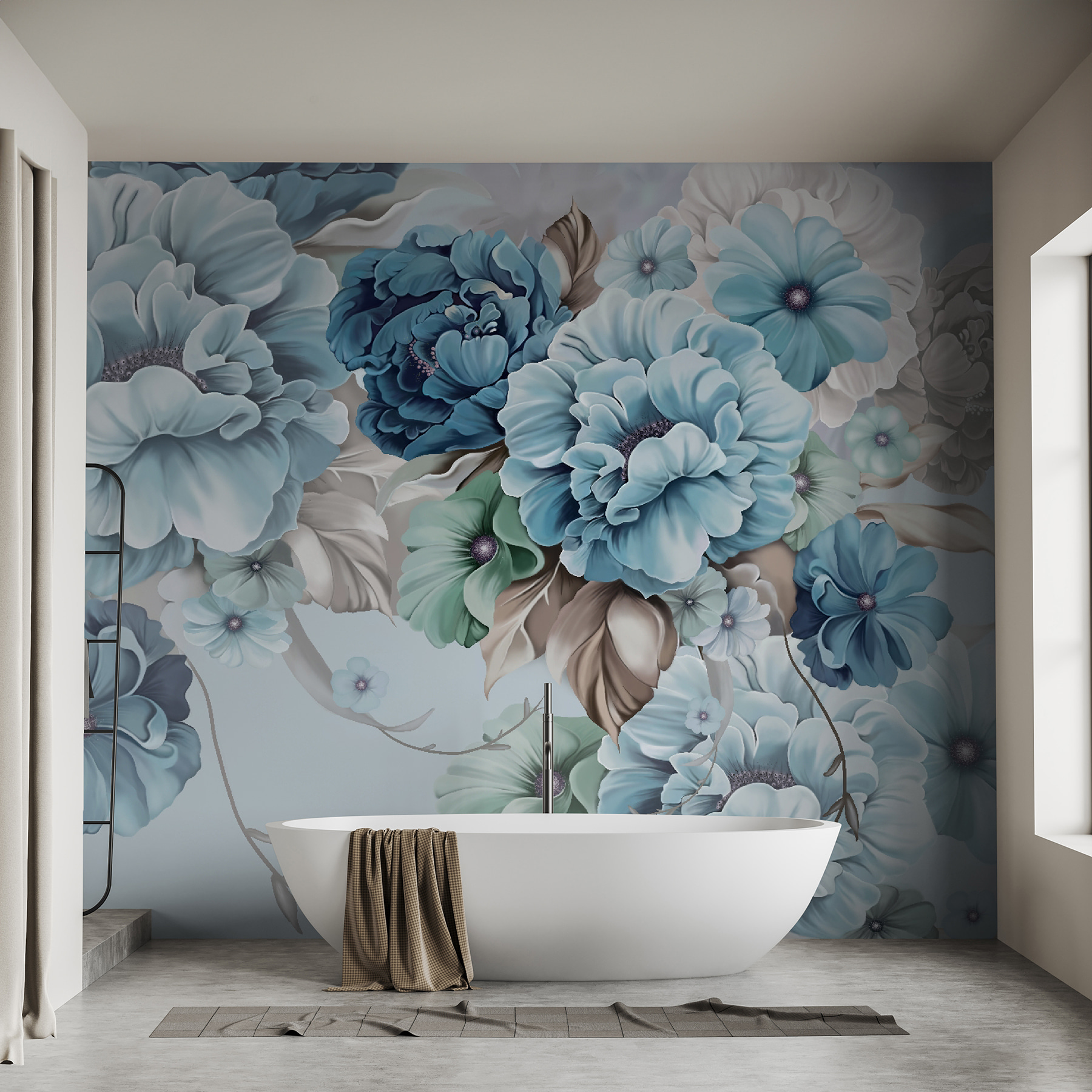 Estes tons suaves de azul-petróleo misturam-se sem esforço, criando uma vibração calmante. É quase como se sussurrassem: “Respira fundo e relaxa”. Quer esteja a decorar a sua sala de estar ou o seu quarto, este mural é como um abraço terno para o seu espaço. Tem um amigo que está sempre com pressa? Eles vão entrar e simplesmente… abrandar.