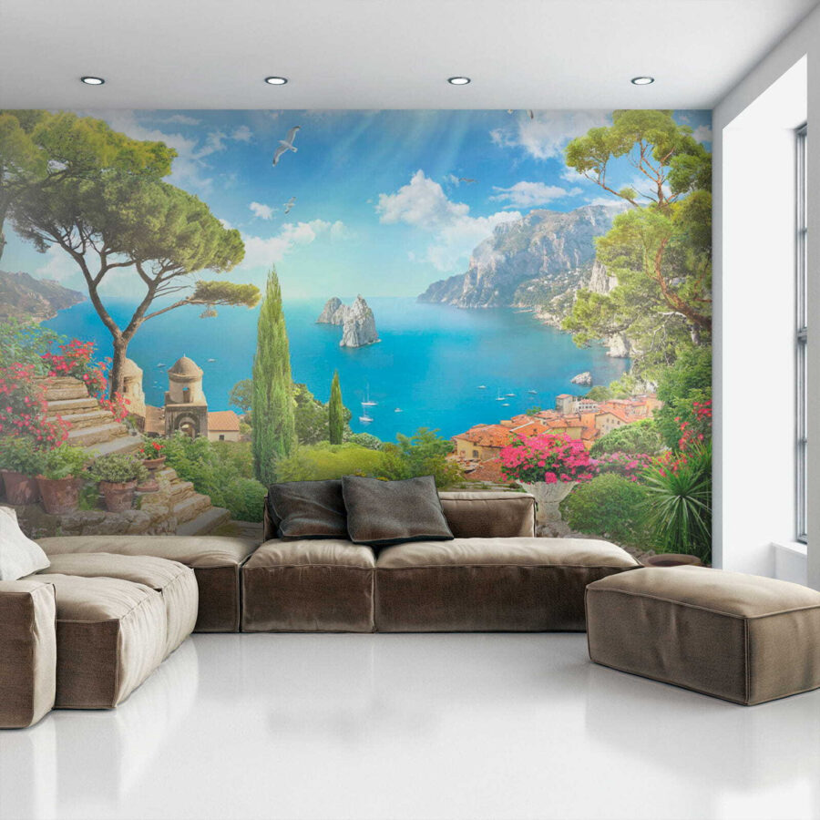 Imagine isto: está a entrar na sua sala de estar, mas espere – em vez disso, é recebido por uma deslumbrante vista para o mar. Com os “Fotomurais Bird Flying in the Sky”, as suas paredes ganham um grande brilho. É como acrescentar uma janela com vista direta para o Mediterrâneo, com um toque de fantasia. Pense em vegetação vibrante, caminhos de pedra encantadores e pássaros a voar alto.