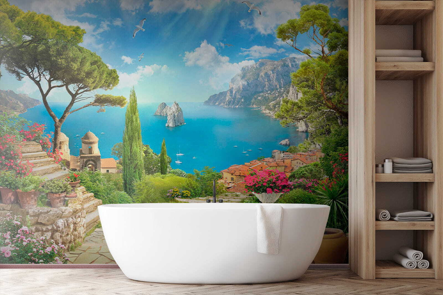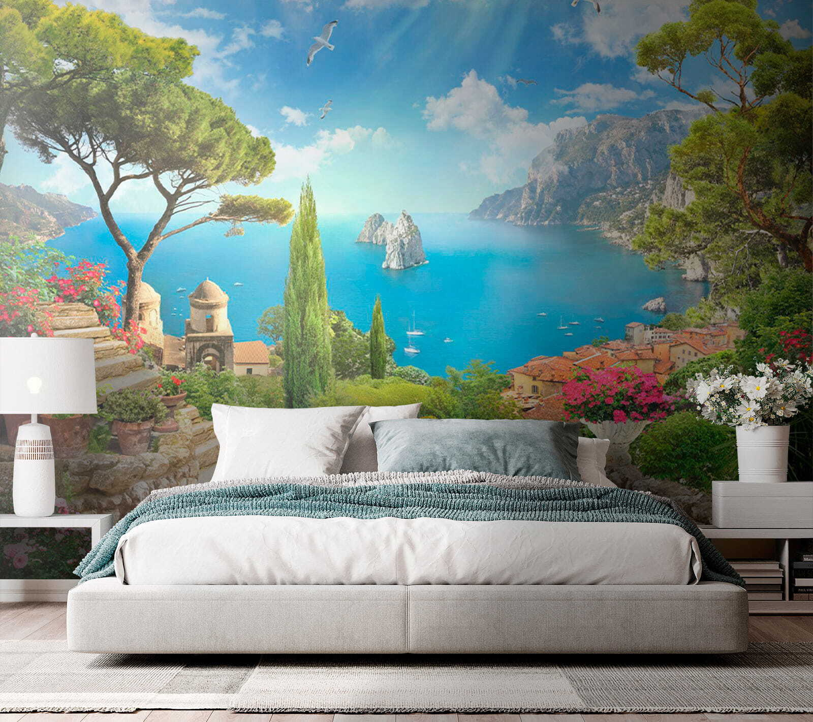 Imagine isto: está a entrar na sua sala de estar, mas espere – em vez disso, é recebido por uma deslumbrante vista para o mar. Com os “Fotomurais Bird Flying in the Sky”, as suas paredes ganham um grande brilho. É como acrescentar uma janela com vista direta para o Mediterrâneo, com um toque de fantasia. Pense em vegetação vibrante, caminhos de pedra encantadores e pássaros a voar alto.