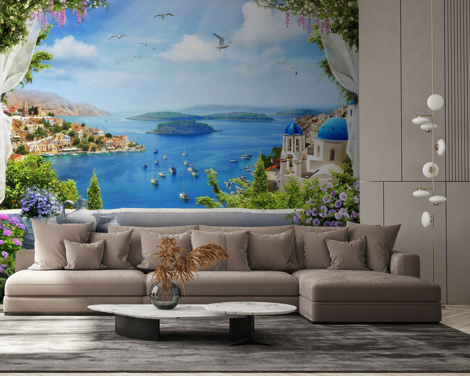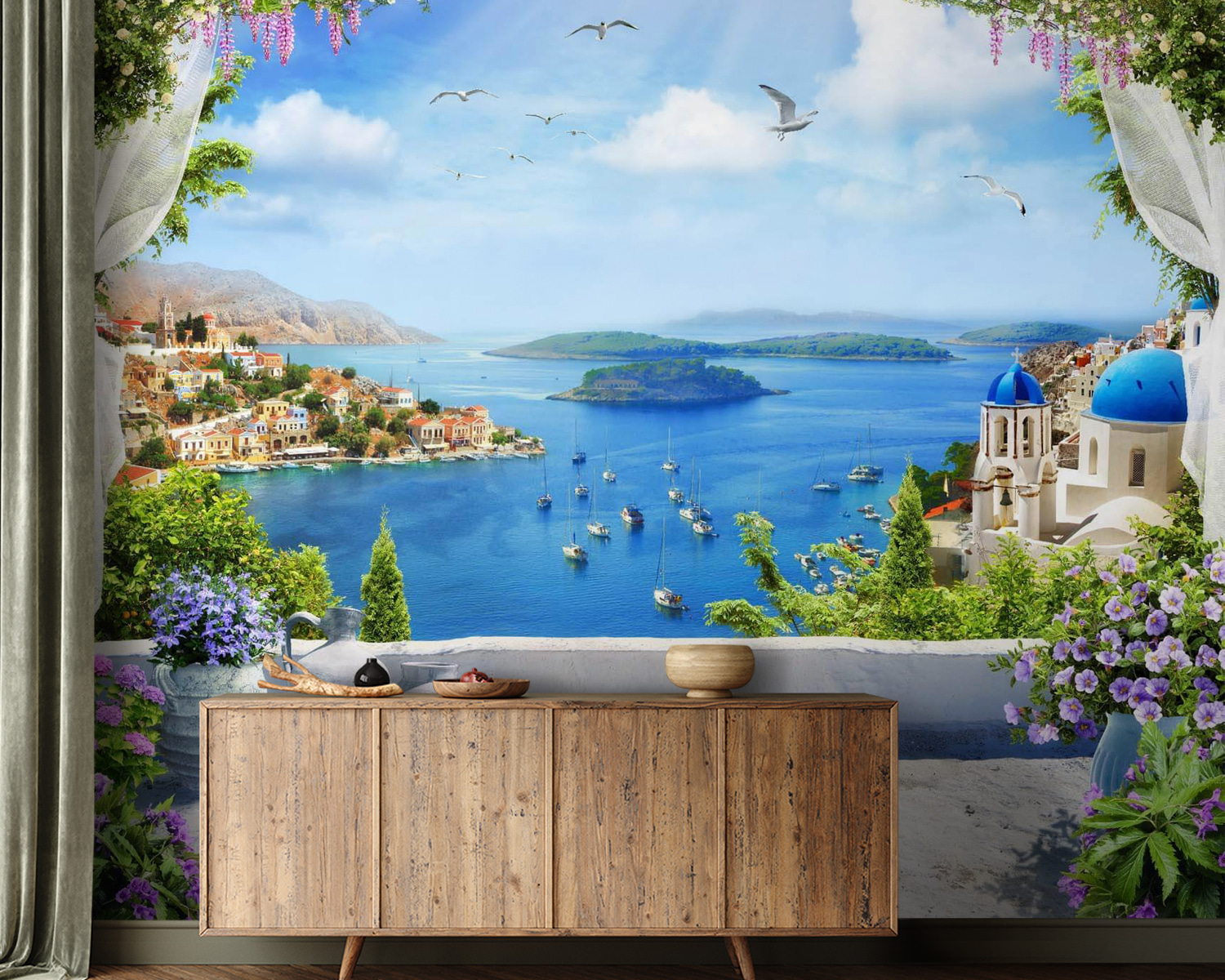 Os pormenores fazem-nos quase sentir a brisa suave do mar e ouvir o chamamento das gaivotas. Este mural insere-se nas categorias Arquitetura, Popular e Murais de Parede à Beira-Mar e é fácil perceber porquê – destina-se a transformar qualquer espaço num refúgio de sonho. Portanto, se você, ou alguém que você conhece, tem uma paixão por arquitetura, escapadelas à beira-mar, ou apenas precisa de um pouco mais de escapismo na sua vida quotidiana, este mural é uma escolha fantástica. É uma dose diária de tranquilidade, mesmo em sua casa.