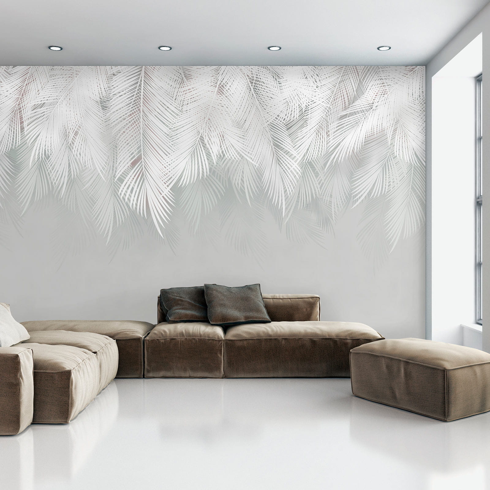 1 avaliação de Papel de parede Padrão de folhas brancas sobre fundo cinzento