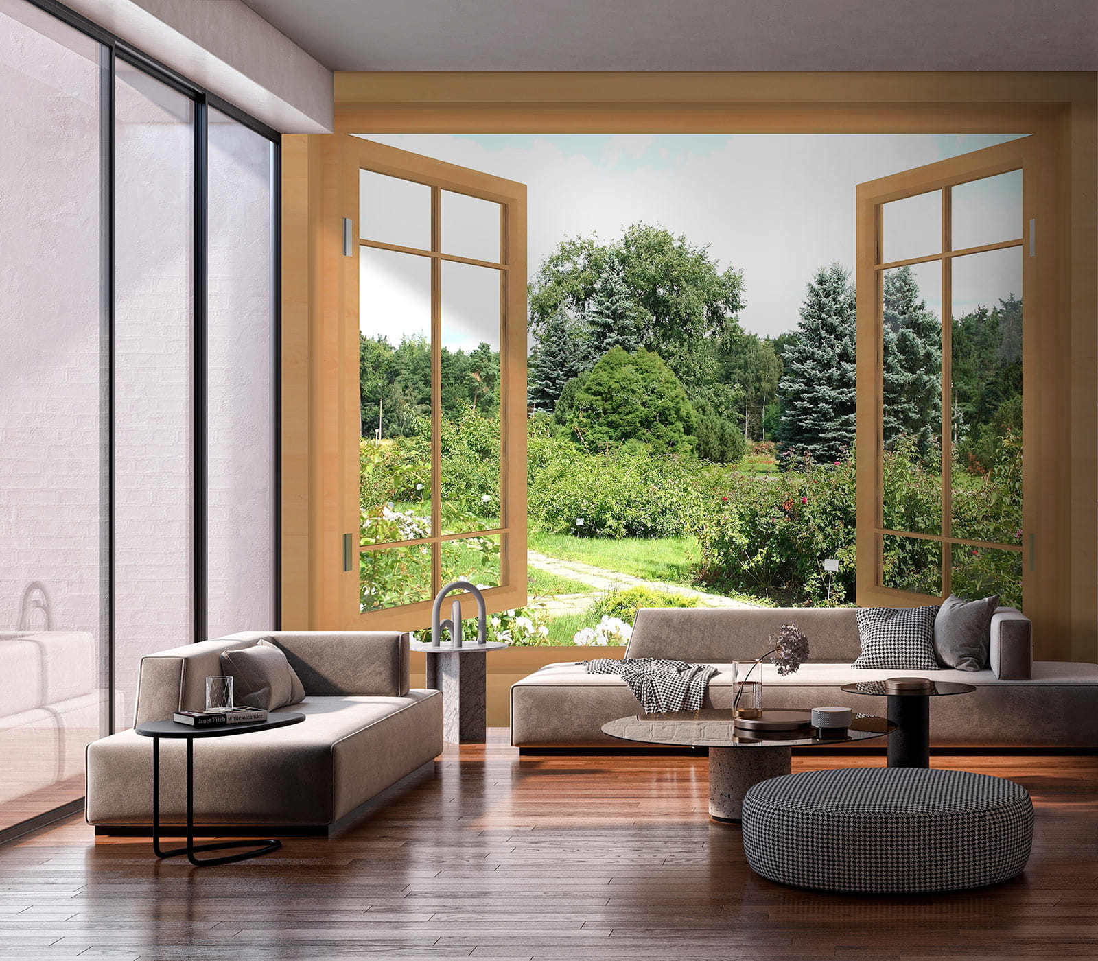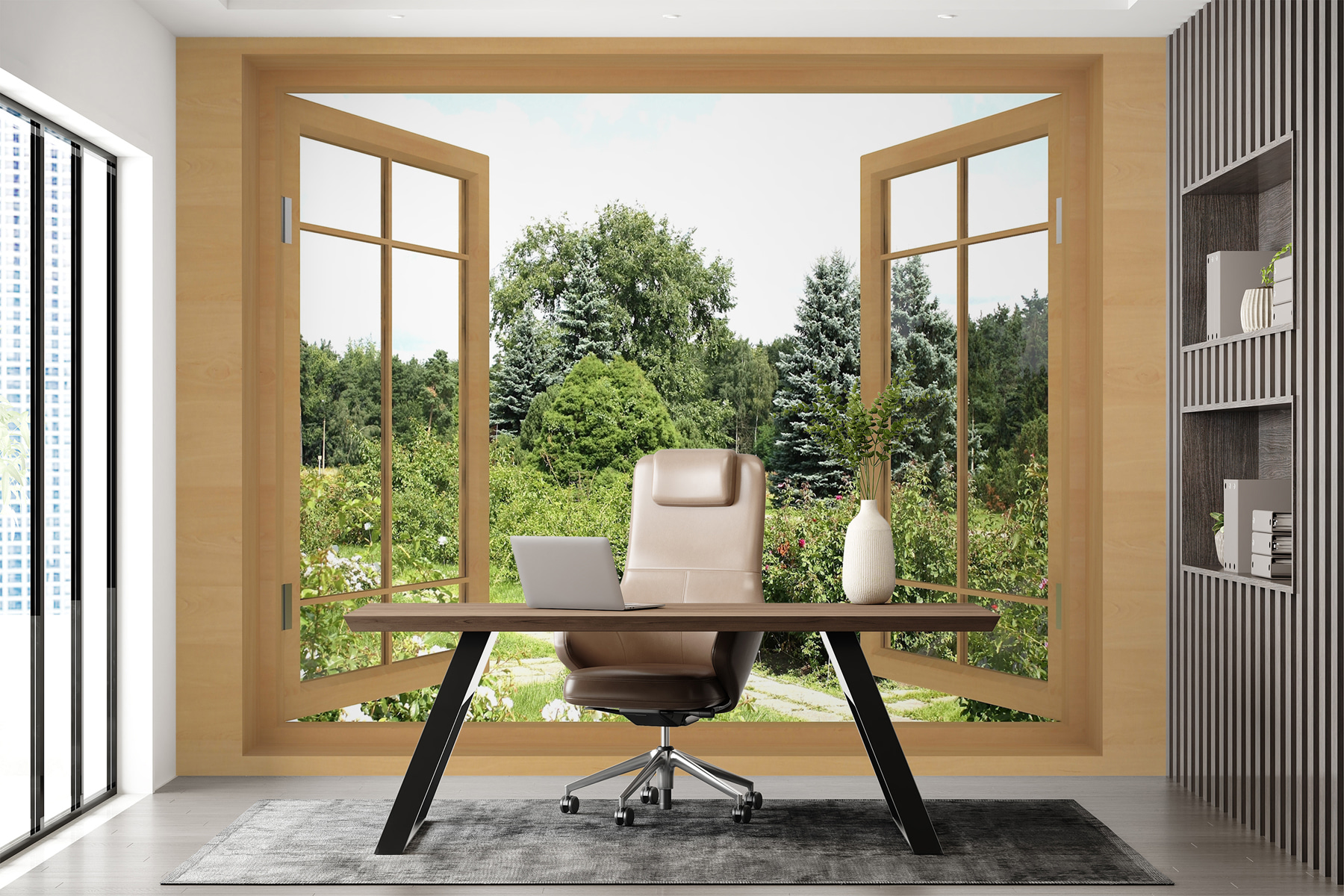 Imagine acordar todos os dias num jardim exuberante, repleto de beleza intemporal, sem precisar de regar uma única planta! Este mural de parede “Vista de um jardim exuberante através da janela” traz o encanto sereno da natureza diretamente para o seu quarto. É como ter um jardim secreto para onde pode fugir sempre que as suas paredes começarem a sentir-se um pouco sem graça. Quer viva numa cidade agitada ou nos subúrbios tranquilos, este mural proporciona-lhe um retiro instantâneo e pacífico. Pense na tranquilidade – a luz do sol a filtrar-se através das folhas, os verdes vibrantes, talvez até a apanhar um pássaro ocasional. Pode fazer com que a sua sala de estar, quarto ou até mesmo o seu escritório se sinta como um refúgio acolhedor. Além disso, é perfeito para quem não tem um polegar tão verde (piscadela de olho), uma vez que não requer manutenção. Imagine-se sentado com uma chávena de chá, um bom livro e aquela vista! É espetacular, não é?