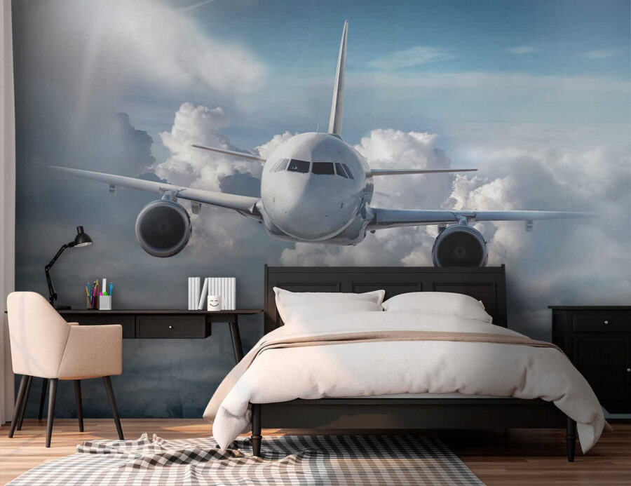 1 avaliação de Papel de parede Avião a passar por cima de nuvens fofas