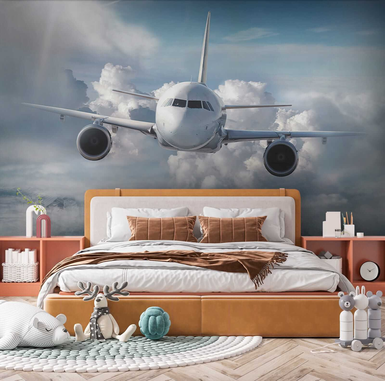 1 avaliação de Papel de parede Avião a passar por cima de nuvens fofas