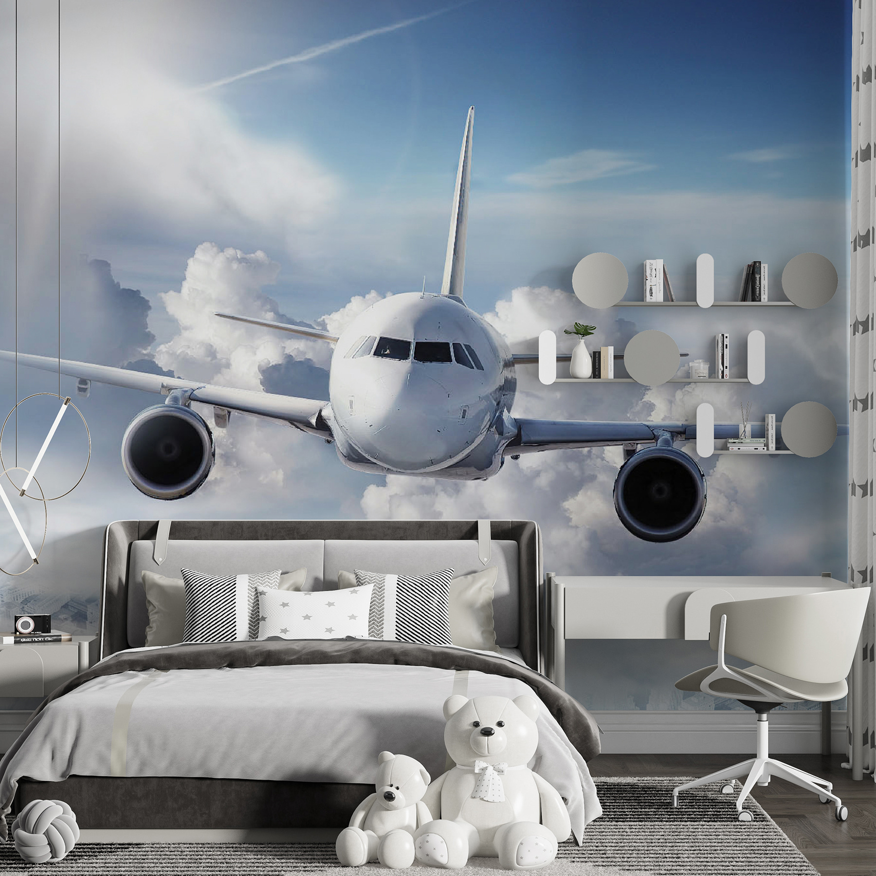 Faça uma viagem acima das nuvens sem sair da sala! Este mural, com um avião sereno a navegar entre nuvens fofas, é perfeito para despertar um sentido de aventura. Transforma instantaneamente qualquer espaço numa fuga de sonho onde a imaginação pode voar. Imagine o quarto de uma criança a tornar-se um cockpit acolhedor, inspirando devaneios de lugares longínquos e céus sem fim. Com tons suaves e uma vibração tranquila, é como ter uma janela para as maravilhas do mundo diretamente na parede. Deixe que este mural eleve a decoração e crie uma atmosfera divertida – perfeita tanto para exploradores em início de carreira como para viajantes experientes!