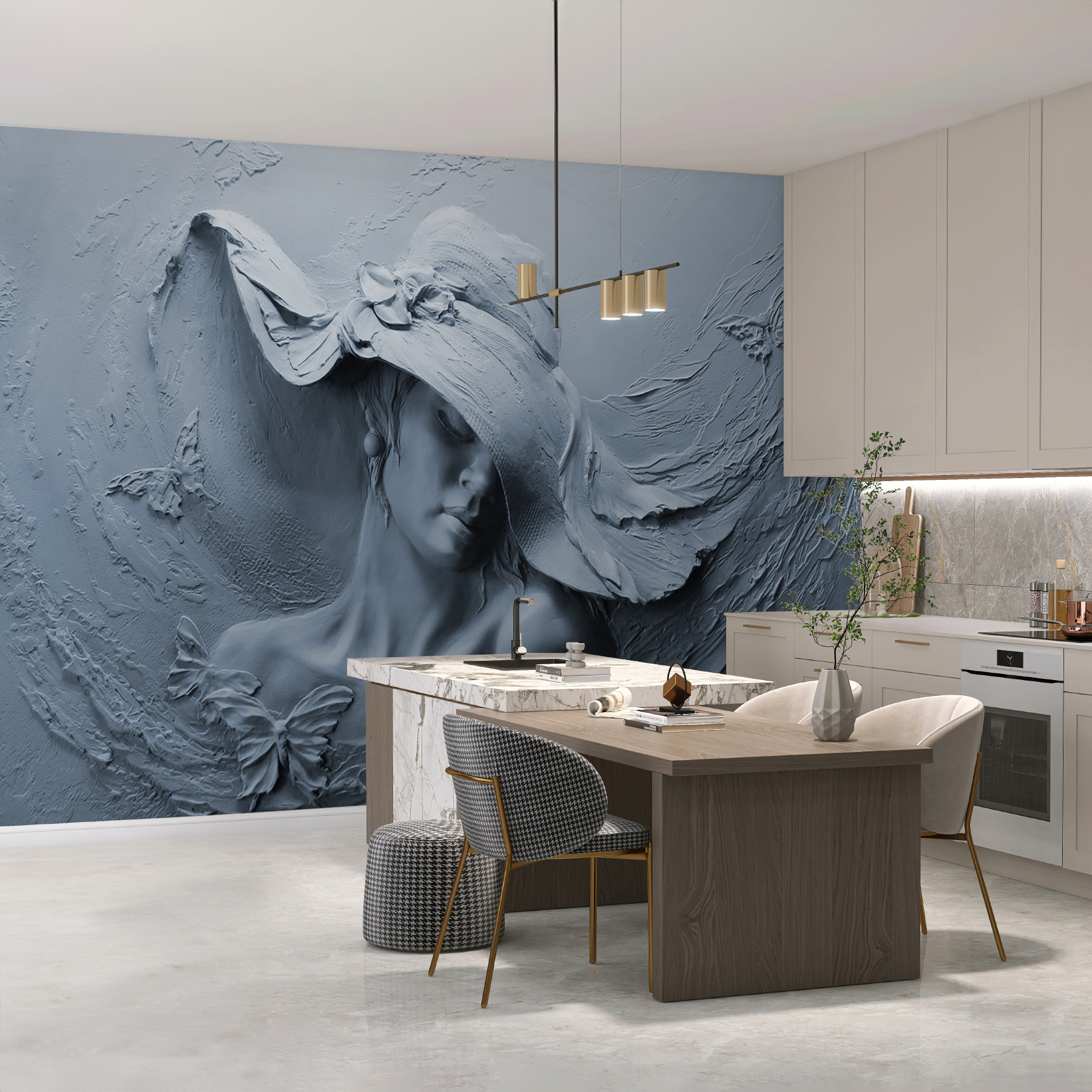 Transforme o seu espaço com este mural de parede cativante, com uma escultura serena de uma mulher com um chapéu. É como trazer uma brisa suave para o seu quarto – instantaneamente edificante. Imagine-se sentado com o seu livro favorito, as delicadas borboletas que giram à sua volta parecem quase vivas. Esta peça impressionante não só acrescenta interesse visual, como também desperta devaneios e histórias. Perfeita para estimular a criatividade ou apenas para provocar um sorriso quando passa por ela. Tem uma parede em branco? Este mural é como um abraço caloroso, convidativo e um pouco misterioso. Perfeito para quem gosta de uma decoração única que fala à alma.