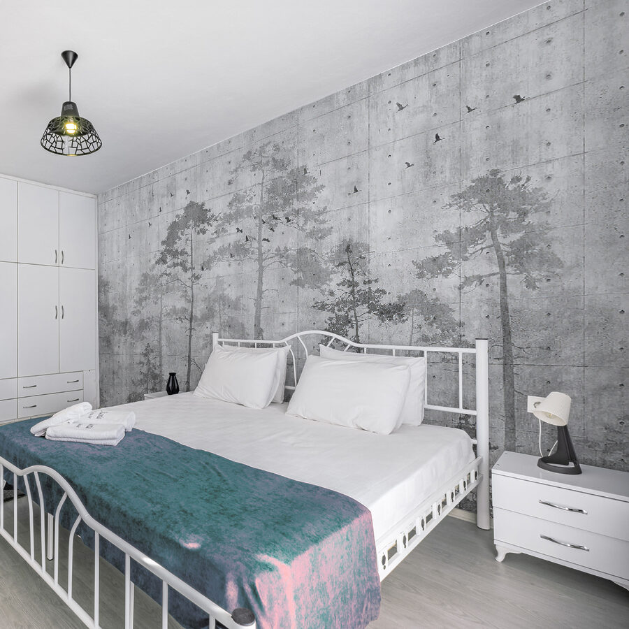 Sempre quis um toque de natureza sem a manutenção? Este mural “Sombra de Árvore numa Parede de Betão” traz a calma de uma floresta diretamente para o seu espaço. Pense nele como um passeio sereno na floresta, sem o repelente de insectos. As árvores suaves e sombrias contra o fundo de betão têm uma sensação quase de aguarela, como uma manhã de sonho e neblina capturada só para si.