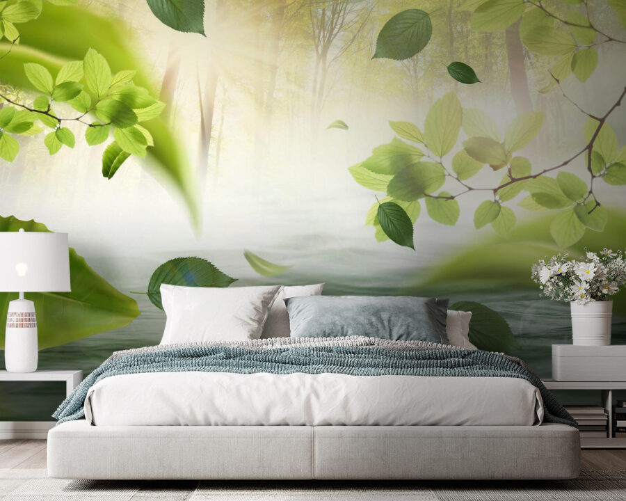 Transforme qualquer espaço numa fuga refrescante com este mural “Water with Leaves”. Imagine entrar numa floresta serena, onde as folhas dançam suavemente sobre um riacho cintilante. É como trazer uma fatia da natureza diretamente para a sua casa. Imagine manhãs acolhedoras com a luz do sol a entrar, ou aquela vibração nocturna perfeita quando o mundo lá fora se acalma. Os verdes suaves e a água calmante criam uma atmosfera tranquila – ideal para relaxar após um longo dia. Não se trata apenas de decoração; é como um abraço caloroso da natureza. Perfeito para uma sala de estar, um quarto ou mesmo um recanto de leitura acolhedor. Quem não quereria isso?