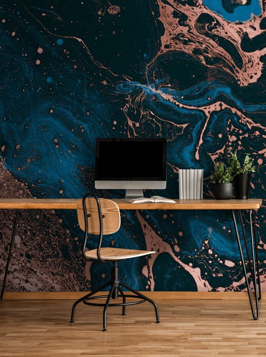Olá! Veja este mural de parede hipnotizante chamado “Líquido Azul e Castanho”. Não se trata de um papel de parede vulgar – é como uma bola de gelado cósmico. Pense em redemoinhos de azul profundo e castanho terra a misturarem-se, criando este efeito trippy e marmoreado. Perfeito para transformar qualquer divisão numa mini exposição de arte.