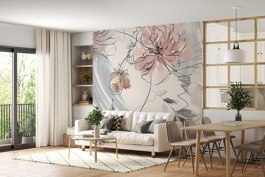5 avaliações de Papel de parede Esboço floral delicado com toques de aguarela