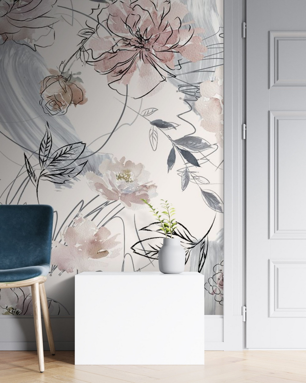 5 avaliações de Papel de parede Esboço floral delicado com toques de aguarela