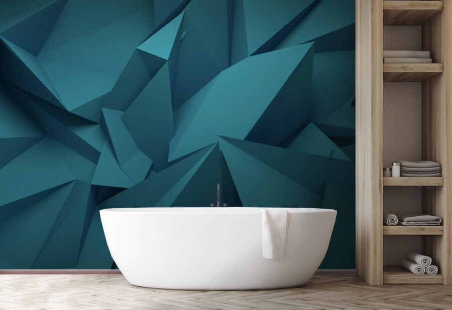 Imagine isto na sua sala de estar – uma mistura abstrata de formas geométricas azuis. É como mergulhar num livro de design 3D e trazer a essência da arte moderna diretamente para o seu espaço. Os azuis suaves criam uma vibração calma, mas os ângulos agudos mantêm-no excitante. Imagine os seus amigos a entrar e a dizer imediatamente: “Uau, isto é fixe!” É perfeito para quem procura dar um toque especial ao seu quarto sem ser demasiado selvagem – apenas a quantidade certa de estilo artístico. Quer esteja a enrolar-se com um livro ou a organizar uma reunião acolhedora, este mural cria o ambiente certo.