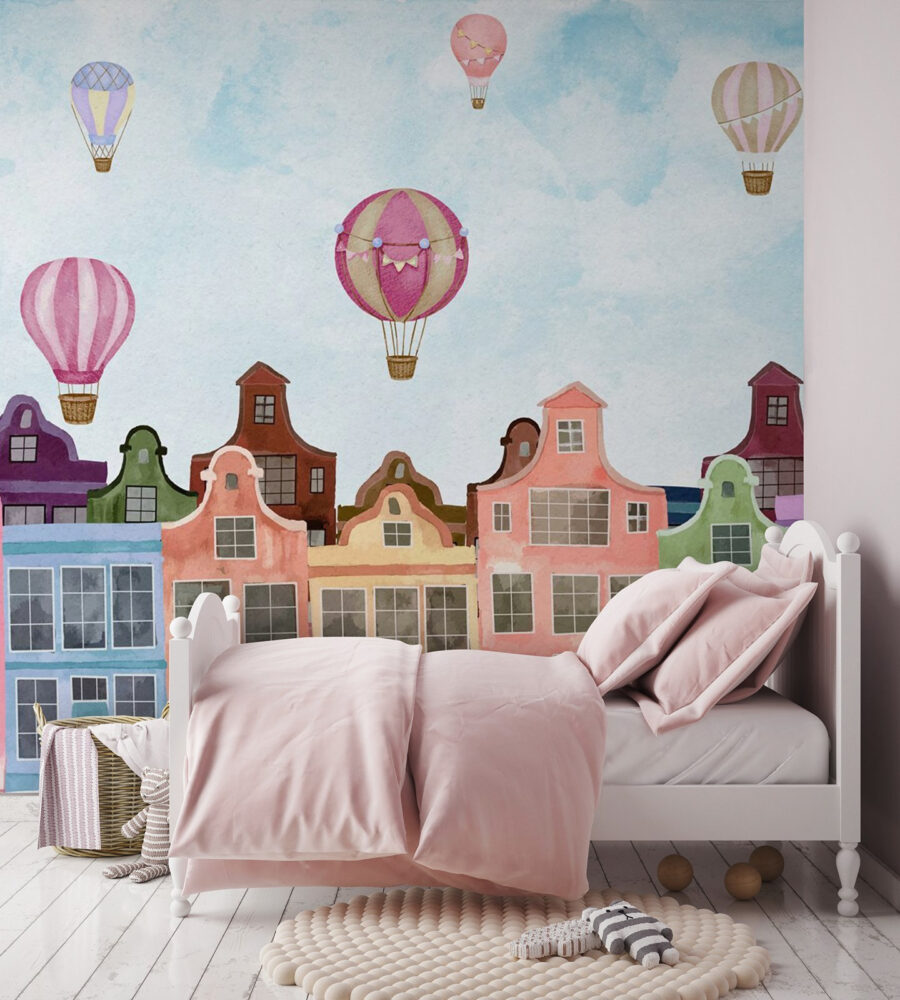 Leve um pouco de fantasia para casa com este impressionante mural de parede, “Grupo de edifícios com balões de ar quente”. Imagine entrar num mundo onde casas coloridas se erguem orgulhosamente, com aqueles balões divertidos a dançar no céu. É como aquele local de férias de sonho que adoraria visitar, mesmo na sua sala de estar. O toque aquarelado acrescenta uma leveza que pode iluminar qualquer espaço, tornando-o um pouco mais alegre.