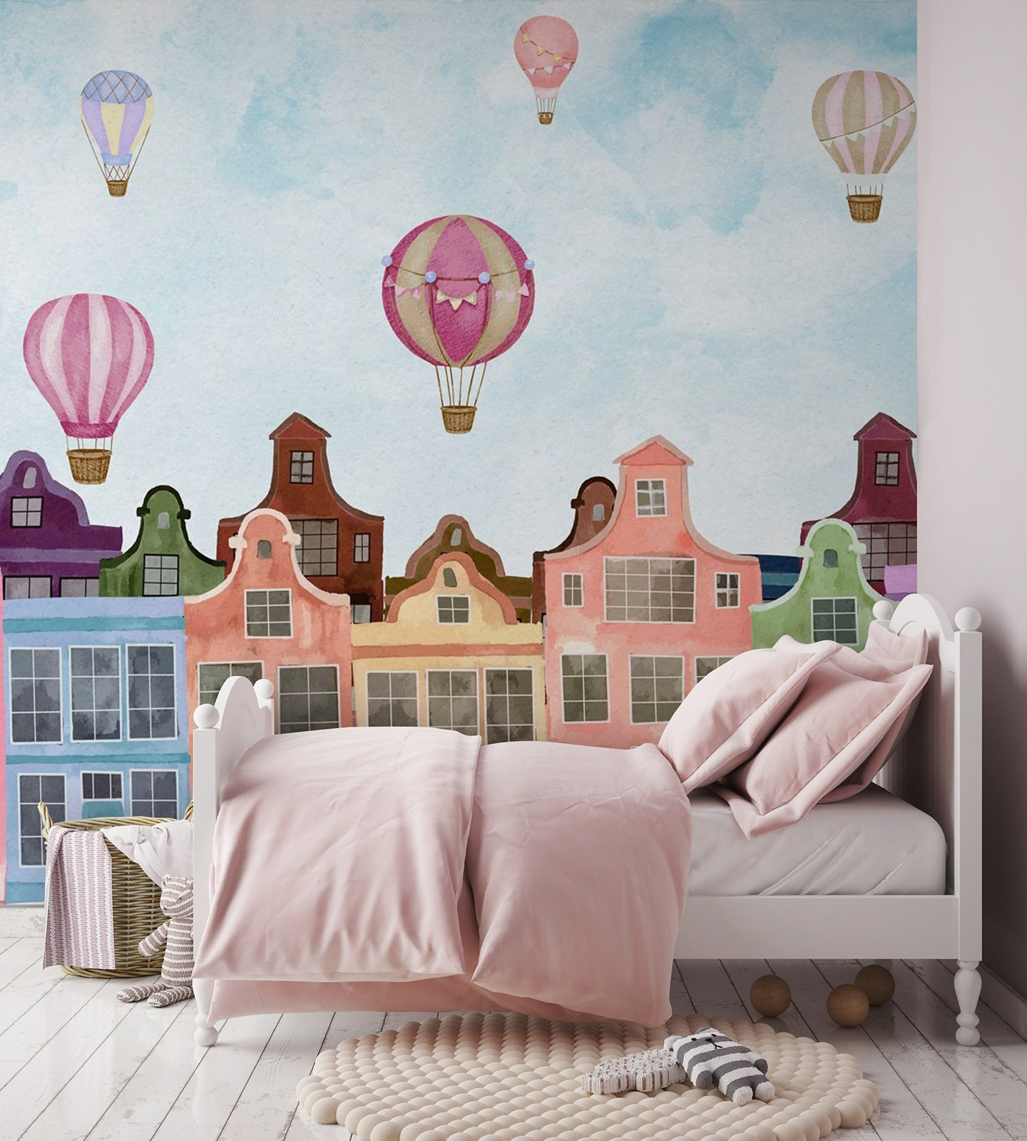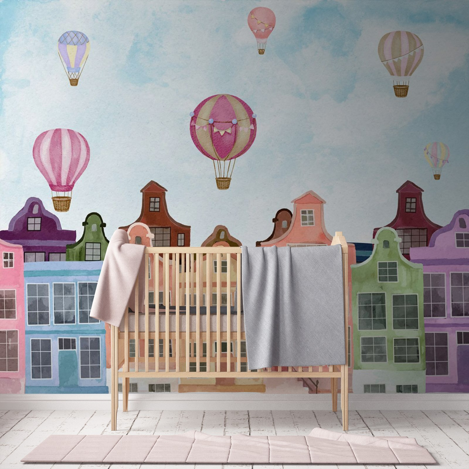 Cada olhar para este mural pode levá-lo a uma mini escapadela. Imagine-se a beber o seu café enquanto estes edifícios vibrantes olham alegremente para si, tornando as manhãs mundanas especiais. Ou imagine como esta beleza poderia inspirar histórias durante as reuniões familiares — todos têm a sua própria aventura de balão. Com a sua encantadora mistura de cores, este mural irá levantar-lhe o ânimo sem esforço, tal como aqueles balões de ar quente que flutuam num dia ensolarado. Perfeito para um recanto aconchegante ou para aquela parede que parece um pouco solitária, não é apenas decoração — é uma experiência à espera de acontecer.