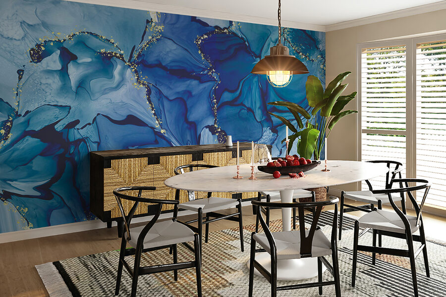 A superfície do papel de parede Economy é mate, enquanto todas as outras opções têm um acabamento acetinado.