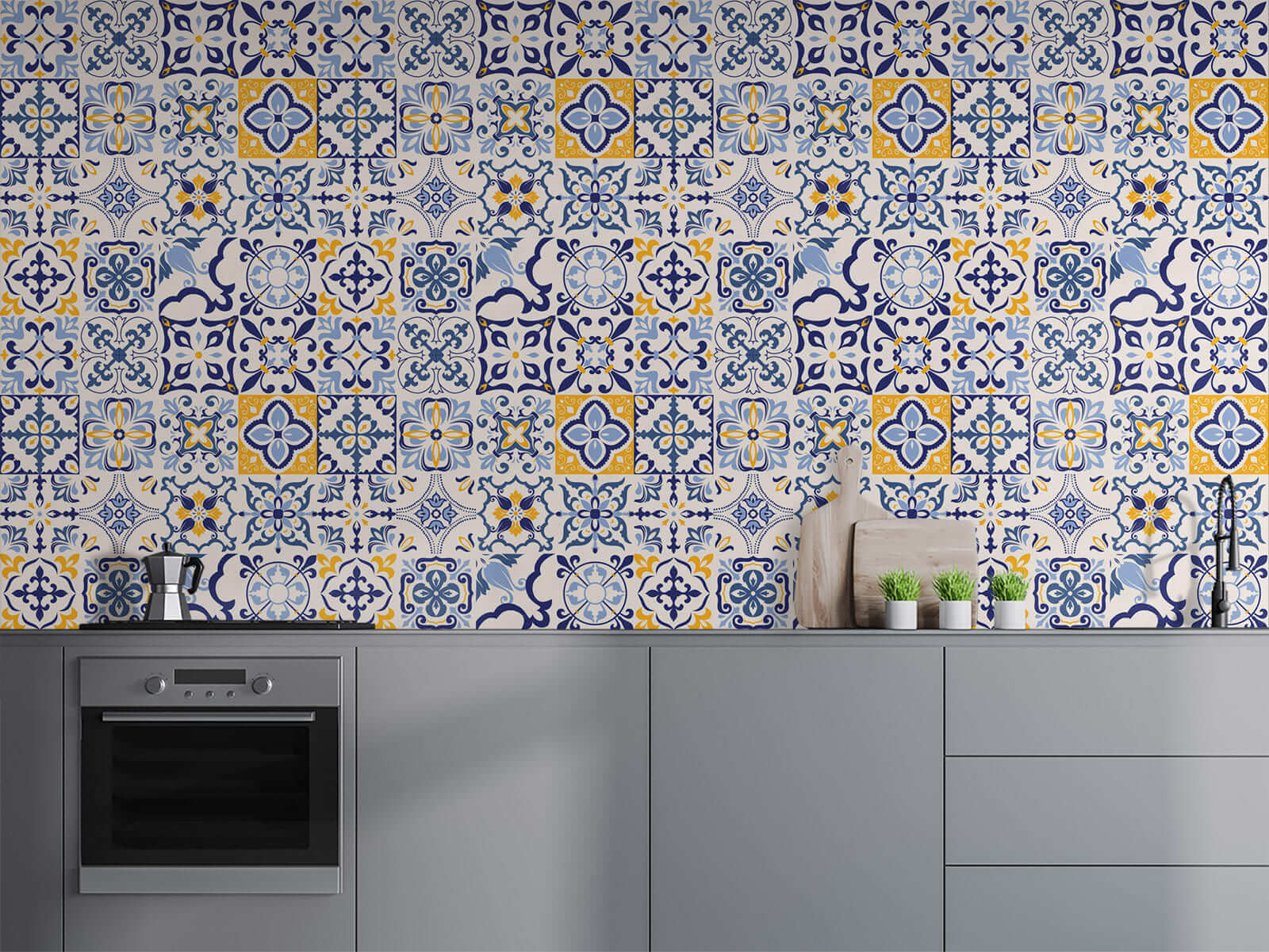 Transforme o seu espaço com este vibrante mural de parede com um padrão deslumbrante de azulejos azuis e amarelos. É como trazer um pouco do charme mediterrâneo para dentro da sua casa. Imagine-se num café acolhedor em Espanha, a saborear um café enquanto aprecia os belos designs à sua volta. As formas geométricas dançam pela sua parede, adicionando um toque divertido que desperta alegria sempre que passa por ela. É perfeito para alegrar uma divisão monótona ou criar um cenário animado para a sua próxima reunião. Imagine os seus amigos a admirar o seu bom gosto enquanto você secretamente se deleita com a glória da sua fabulosa escolha de decoração. Porquê ficar com paredes monótonas quando pode ter uma obra de arte que parece viva?