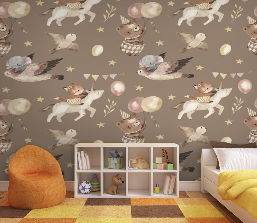 Transforme qualquer divisão num país das maravilhas caprichoso com este encantador mural de parede com animais divertidos e balões coloridos. Imagine entrar num espaço onde um urso segura balões, enquanto um pequeno elefante partilha uma boleia com um pássaro alegre. É como uma festa onde todas as criaturas são convidadas – quão divertido é isso? Este mural dá um toque de imaginação, despertando a alegria e as vibrações de contar histórias. Perfeito para quartos de crianças ou qualquer área que precise de uma dose de felicidade, é um início de conversa instantâneo. Por isso, quer seja um recanto acolhedor ou uma sala de jogos divertida, este mural vai trazer sorrisos e um sentido de aventura!