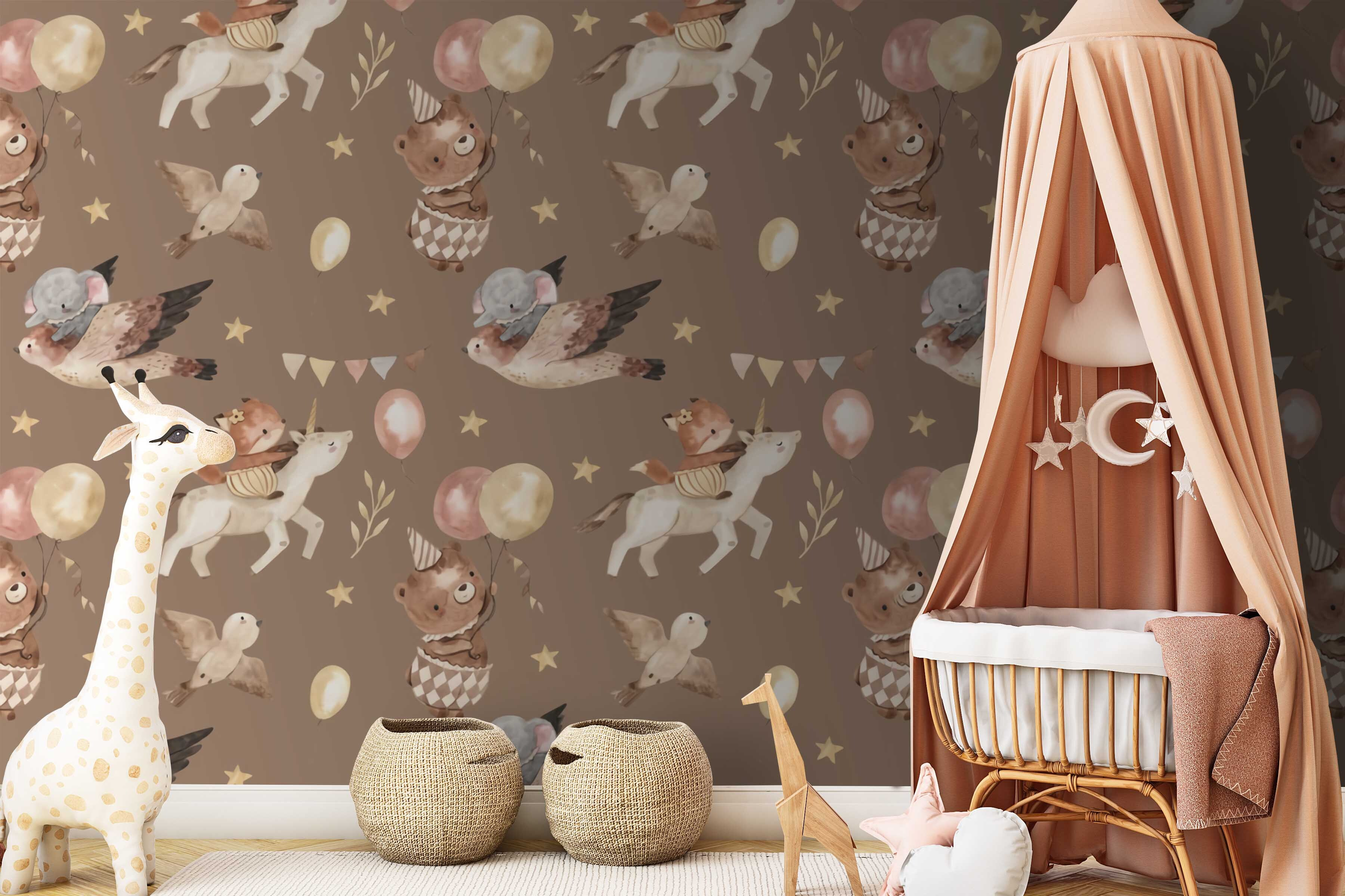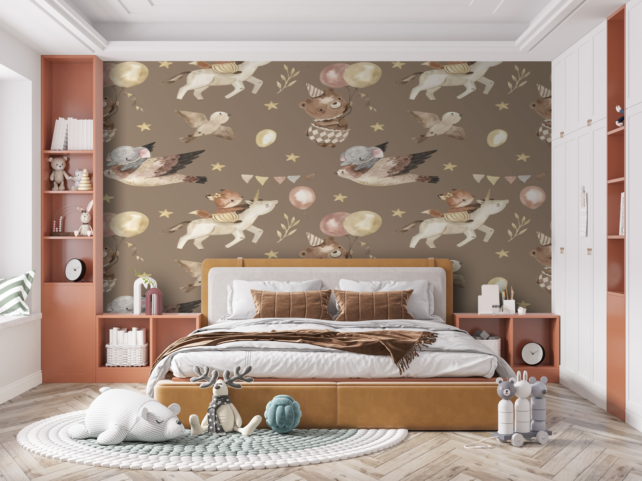 Transforme qualquer divisão num país das maravilhas caprichoso com este encantador mural de parede com animais divertidos e balões coloridos. Imagine entrar num espaço onde um urso segura balões, enquanto um pequeno elefante partilha uma boleia com um pássaro alegre. É como uma festa onde todas as criaturas são convidadas – quão divertido é isso? Este mural dá um toque de imaginação, despertando a alegria e as vibrações de contar histórias. Perfeito para quartos de crianças ou qualquer área que precise de uma dose de felicidade, é um início de conversa instantâneo. Por isso, quer seja um recanto acolhedor ou uma sala de jogos divertida, este mural vai trazer sorrisos e um sentido de aventura!